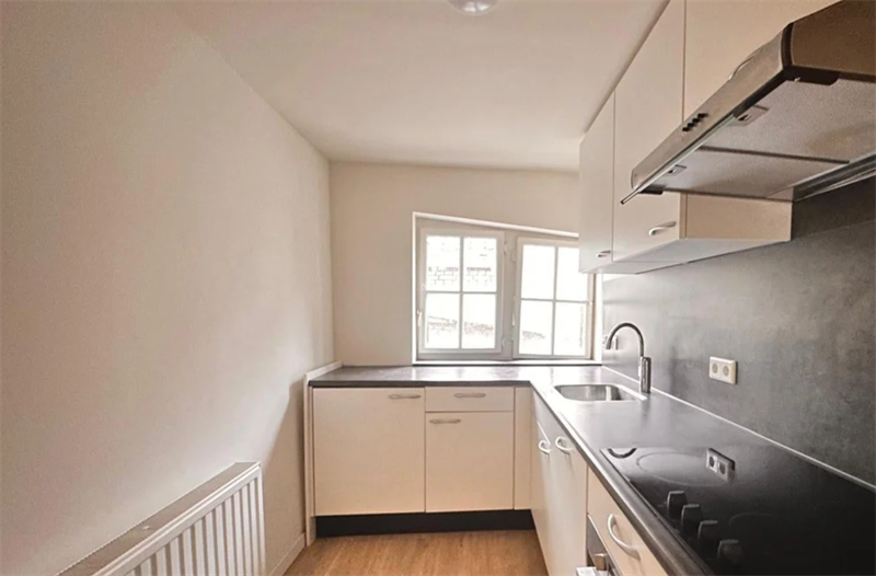 Inkomhal met berging Ruime woonkamer met open keuken Keuken voorzien van vaatwasser, inductiekookplaat, koelkast en combi-magnetron Trap naar de eerste verdieping Twee slaapkamers (ca. 15 m² en 11 m²)...