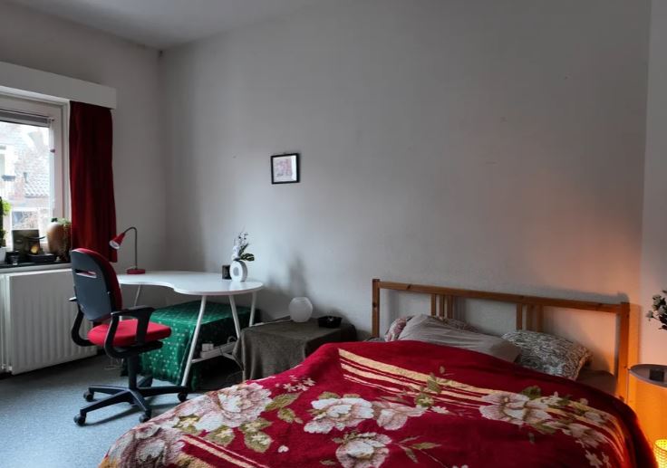 Kamer 2 met eigen wastafel en balkon gelegen op de tweede etage voor met een gemeenschappelijke keuken, toilet, badkamer en kelder met wasmachineruimte. Met buurpand wordt voortuin en fietsenkelder ge...