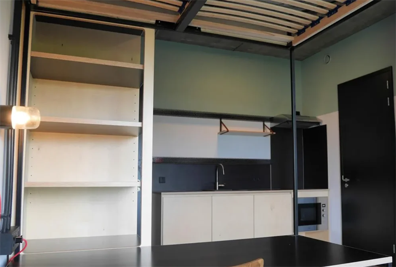 Luxe gemeubileerde studio in het moderne campuscomplex 'Wauwhaus'. De studio is uitgerust met een tweepersoonsbed (140x210cm), moderne en-suite badkamer, luxe open keuken (incl. inbouwapparatuur), roy...