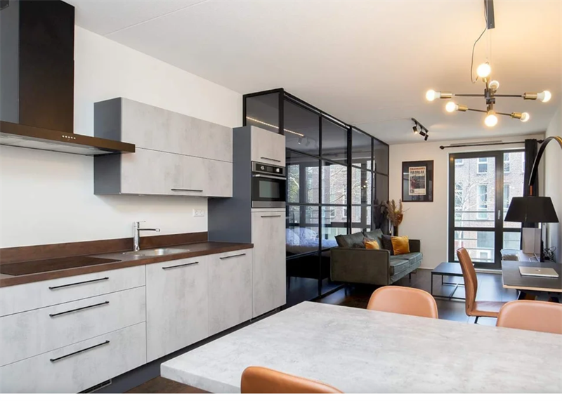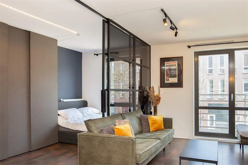 Deze studio heeft een woonoppervlakte van 50 m2. Het woongedeelte is via een schuifwand afgescheiden van het slaapgedeelte. Je eigen balkon ligt op het zuidoosten waar je heerlijk een kopje koffie dri...