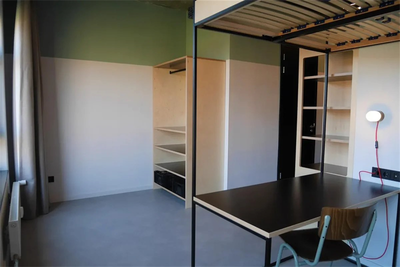 Luxe gemeubileerde studio in het moderne campuscomplex 'Wauwhaus'. De studio is uitgerust met een tweepersoonsbed (140x210cm), moderne en-suite badkamer, luxe open keuken (incl. inbouwapparatuur), roy...