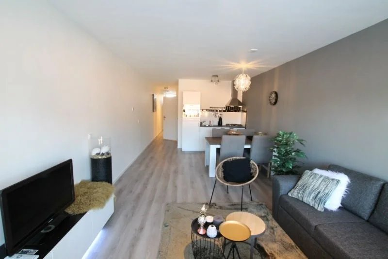 De prachtige woonkamer heeft veel natuurlijk licht dankzij de directe toegang tot het balkon. De open keuken geeft een warme en open sfeer aan de ruimte. De badkamer heeft een nieuwe inloopdouche en e...