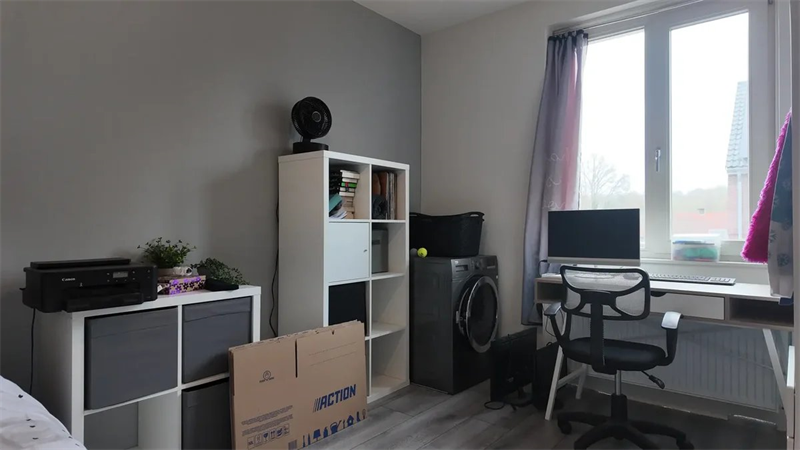 Leuke woning met op de begane grond een hal, toilet, woonkamer met open keuken en tuin met tuinberging, drie slaapkamers, tweede toilet en badkamer op de eerste etage en een grote zolderkamer op de tw...
