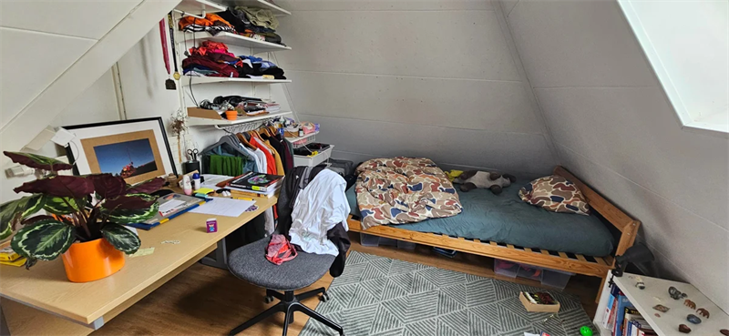 Ruime kamer met eigen keuken. De kamer zelf bevindt "los van het huis" via het dakterras heb je toegang. De badkamer en wc deel je met 5 huisgenoten. Er is zowel een dakterras en een ruim balkon aan d...