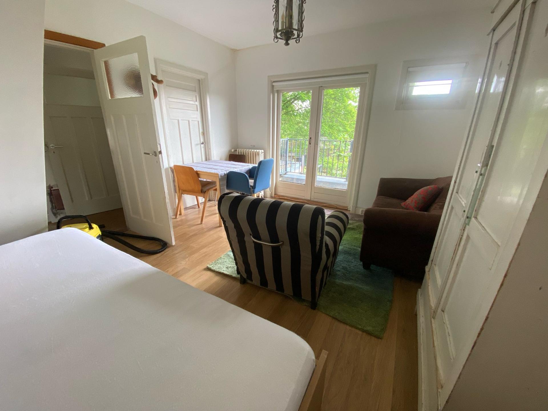 Dit appartement is op de eerste verdieping en heeft twee balkons. Twee ruime kamers (woonkamer en slaapkamer) beschikken beide over een balkon. De badkamer is ruim en licht. Er is een toilet, douche e...