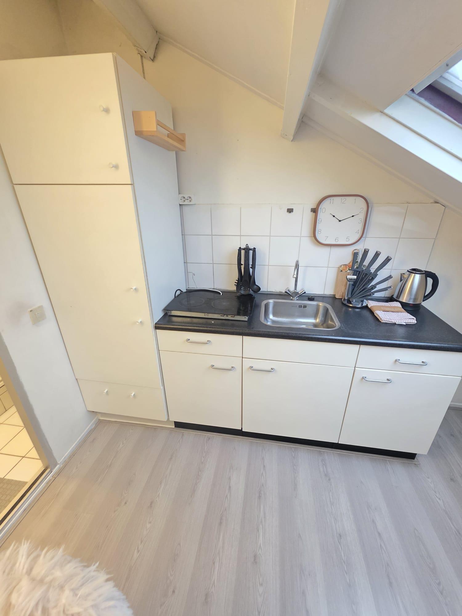 Het appartement: - Bevind zich op de derde verdieping - Beschikt over een fijne woonkamer met één slaapkamer - De open keuken beschikt over een elektrische kookplaat, koelkast en opbergruimte - De b...