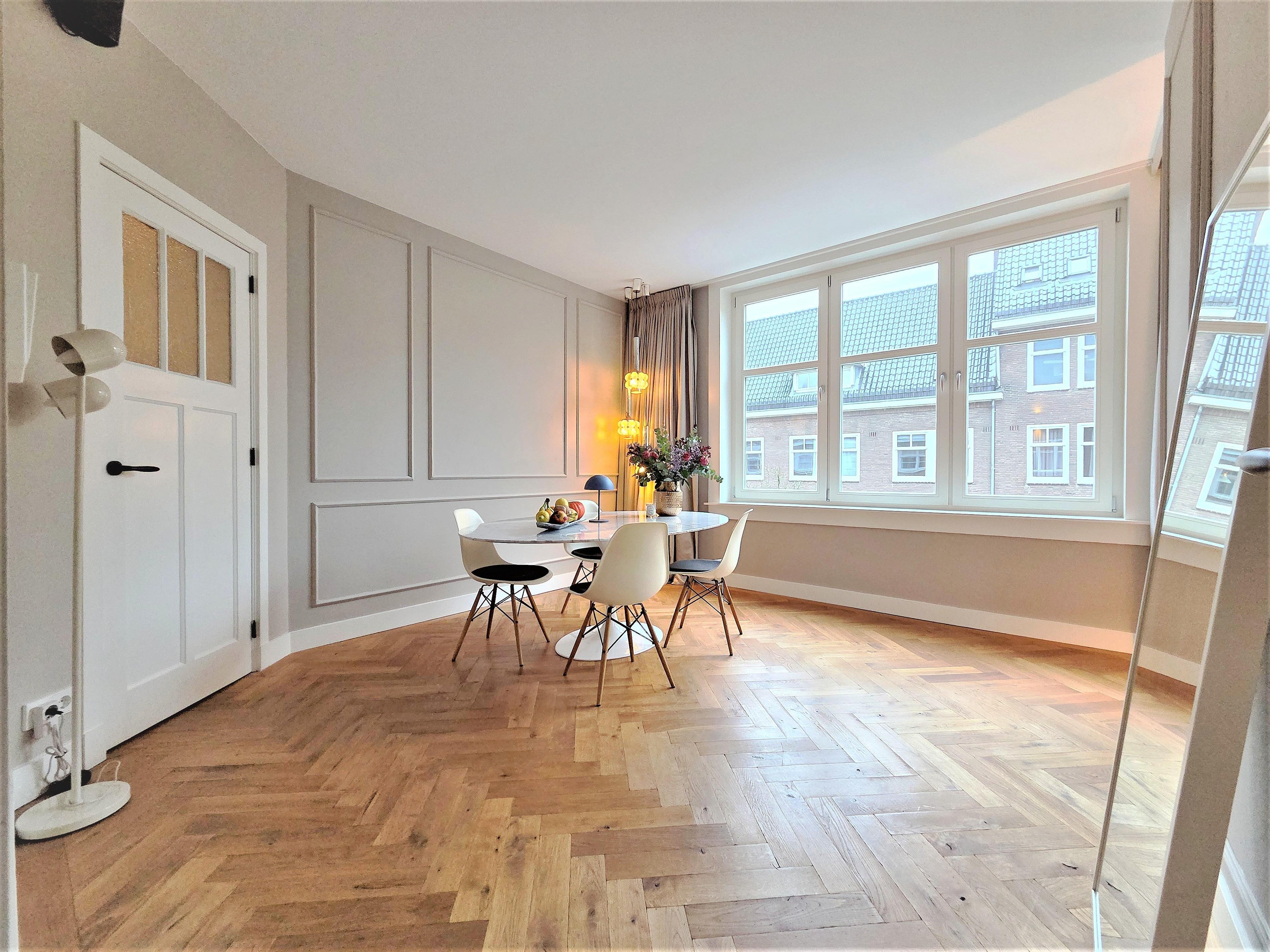 Dit smaakvol gerenoveerde en opvallend lichte HOEKappartement (ca. 75 m²) ligt in een van de meest gewilde straten van de Hoofddorppleinbuurt en kijkt prachtig vrij uit over het groene parkje aan de o...