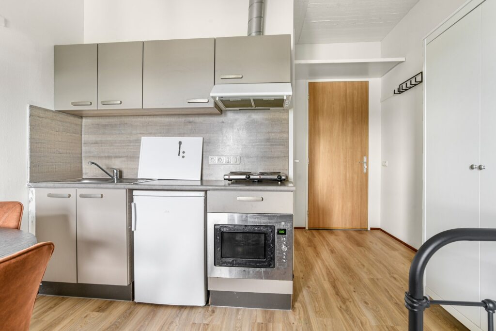 Zelfstandige studio te huur. Deze studio heeft een eigen badkamer en keuken. De ruimte is gestoffeerd en gemeubileerd, zodat je er direct in kunt trekken. Het complex biedt je ook gezamenlijke ruimtes...