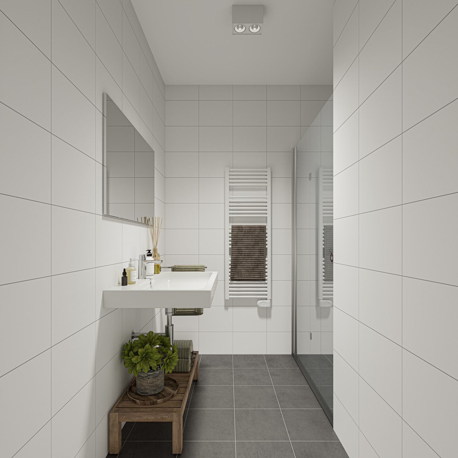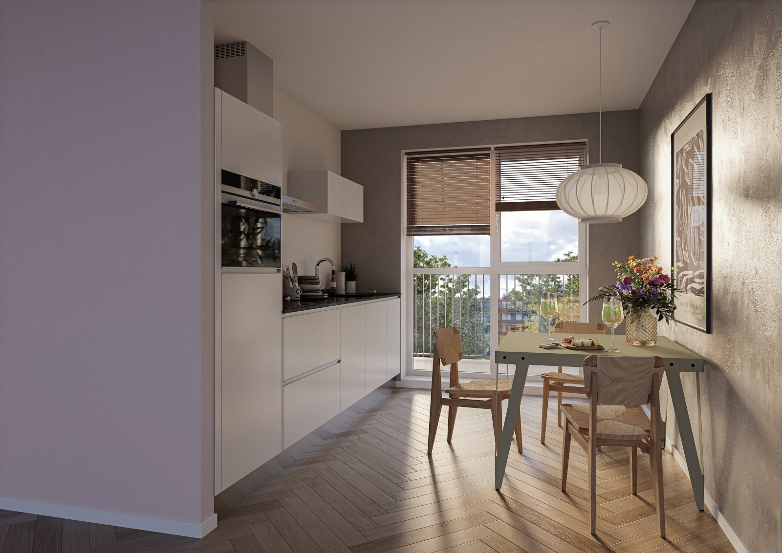 2-kamer appartement met een woonoppervlakte van 61 m2, een witte keuken met donkergrijs quartsiet aanrechtblad en inbouwapparatuur. De woning heeft een volledig betegelde badkamer met douche, wastafel...
