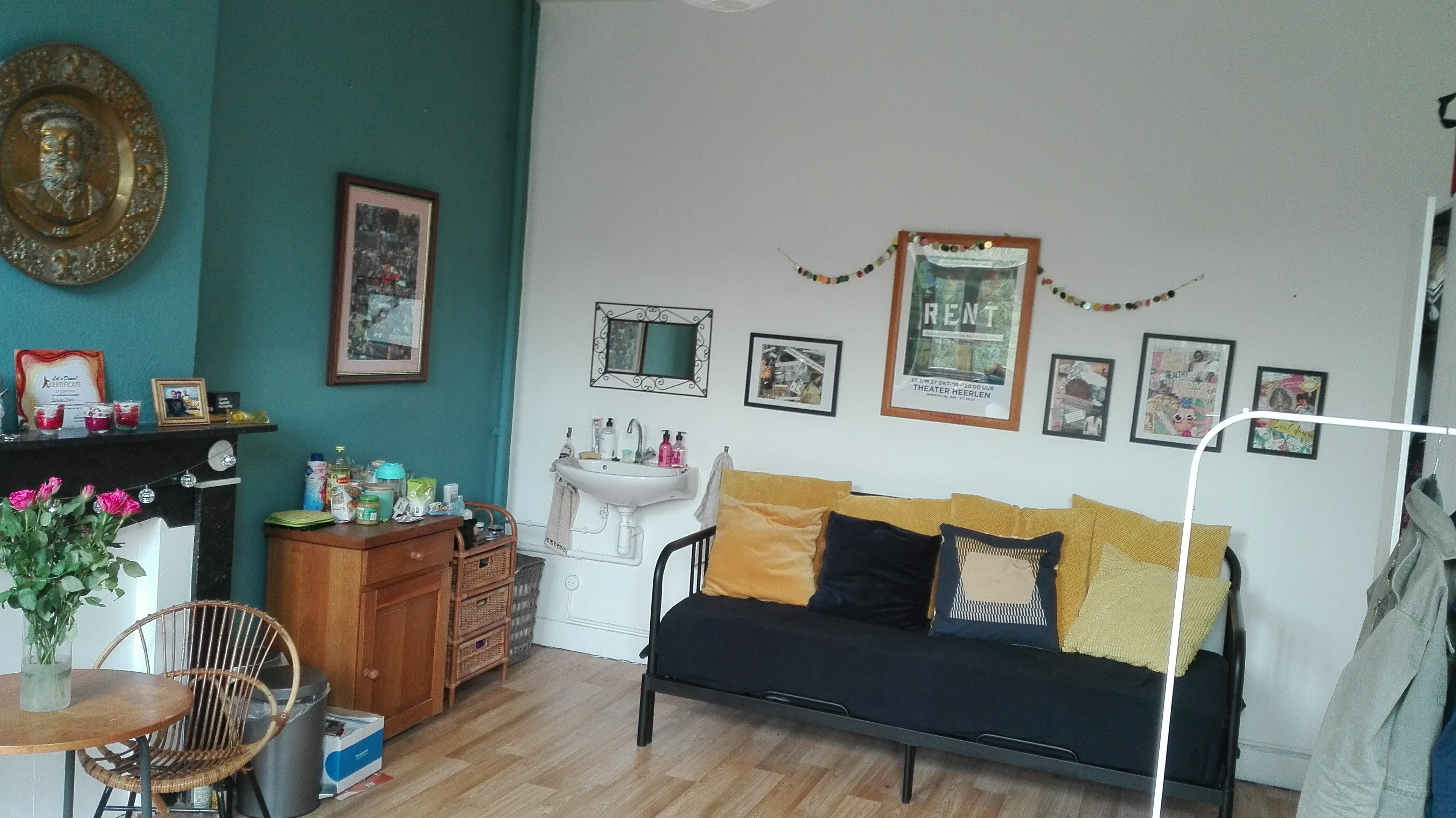 Grote kamer met vaste wastafel in gezellig (meiden) studentenhuis in centrum Maastricht. De huurprijs is inclusief alle kosten.