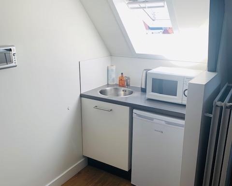 Op tweede etage van klein gemeenschappelijk huis luxe studio ( totaal 3 studio's in het huis). Geheel gestoffeerd en gemeubileerd. Studio heeft inbouw kledingkast . Door indeling en kleurcombinatie mo...