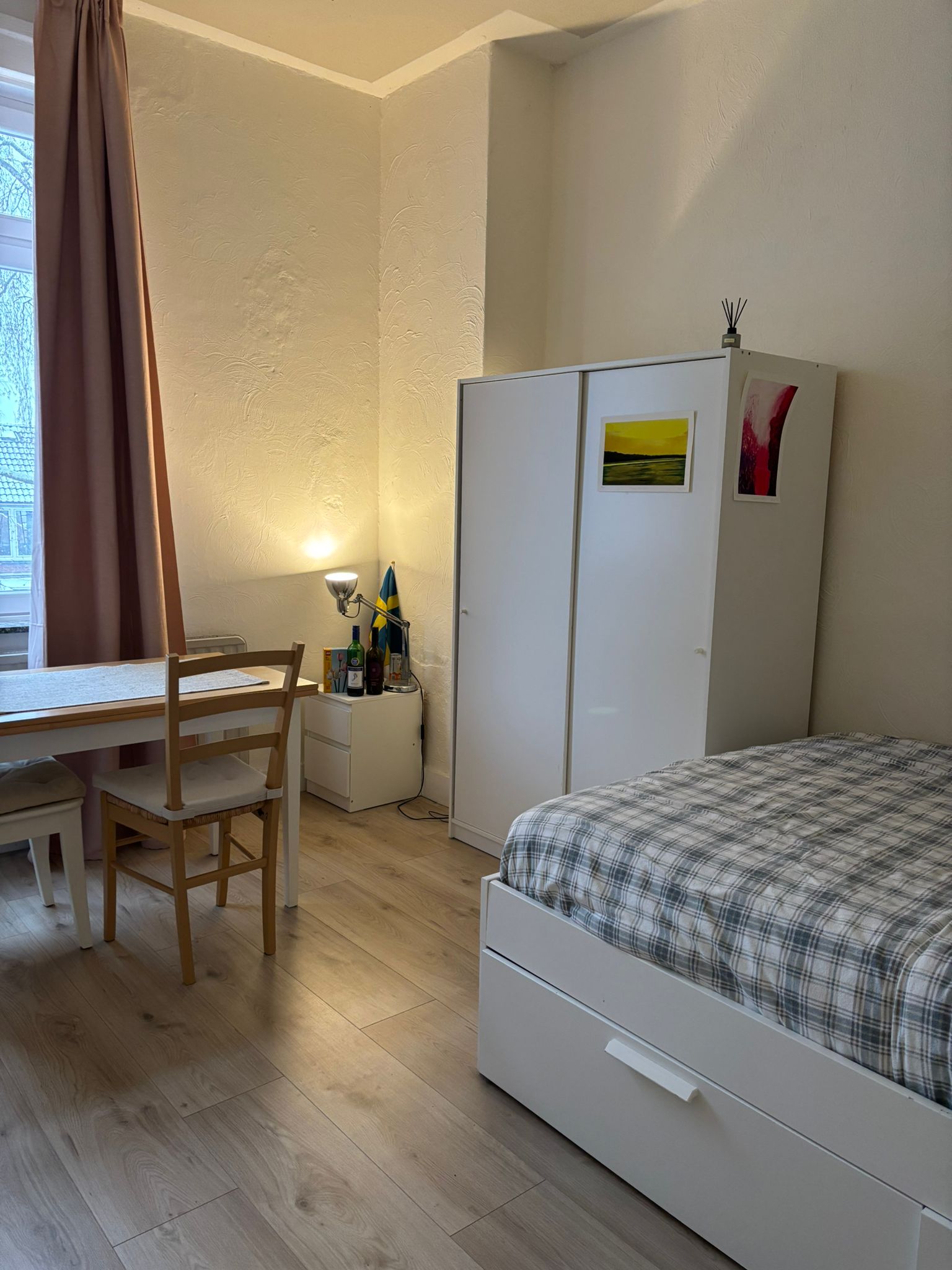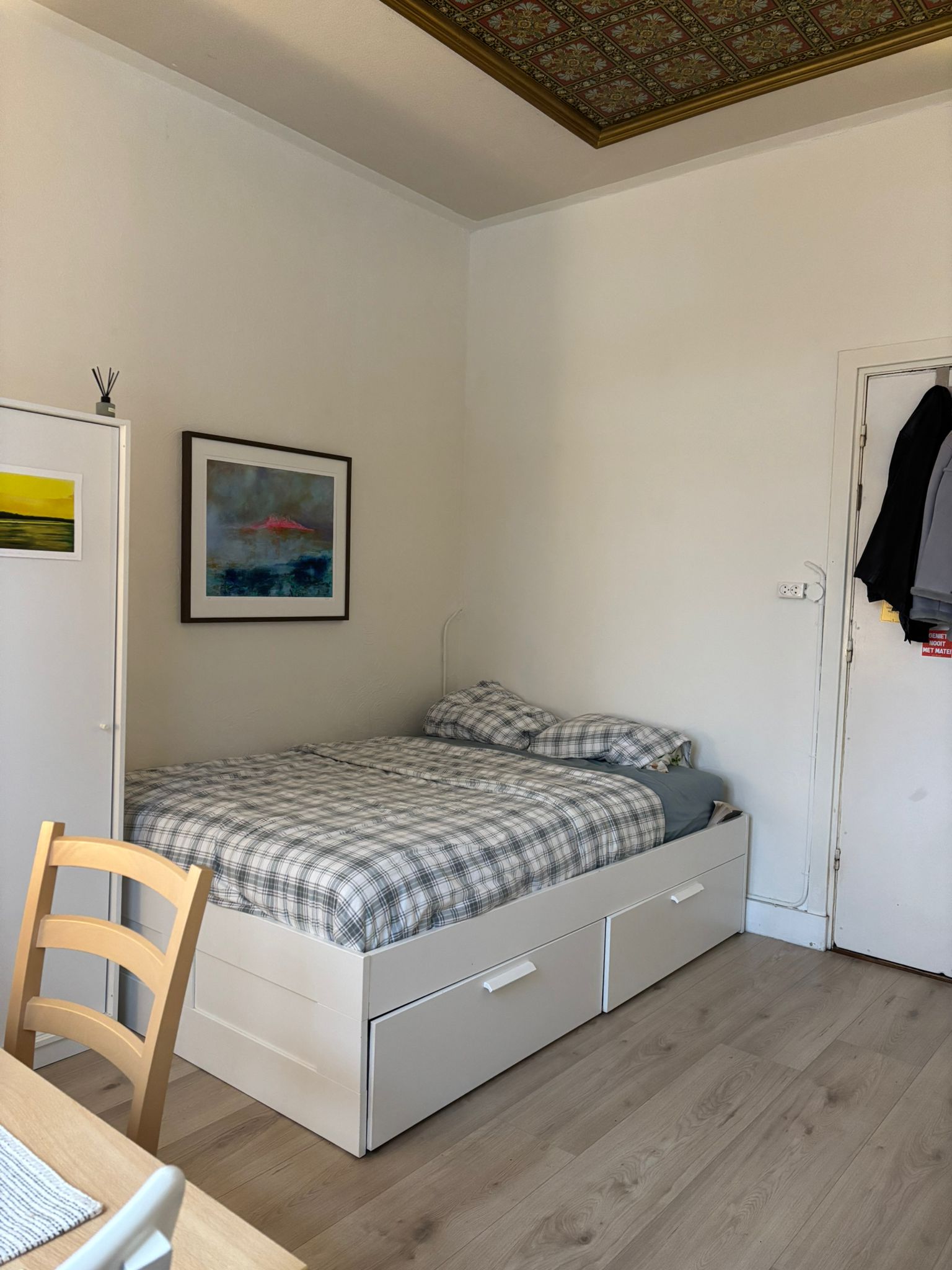 Kamer in een studentenhuis op 1e verdieping. Gedeelde douches, wc's, keuken en wasmachine. WiFi is aanwezig.