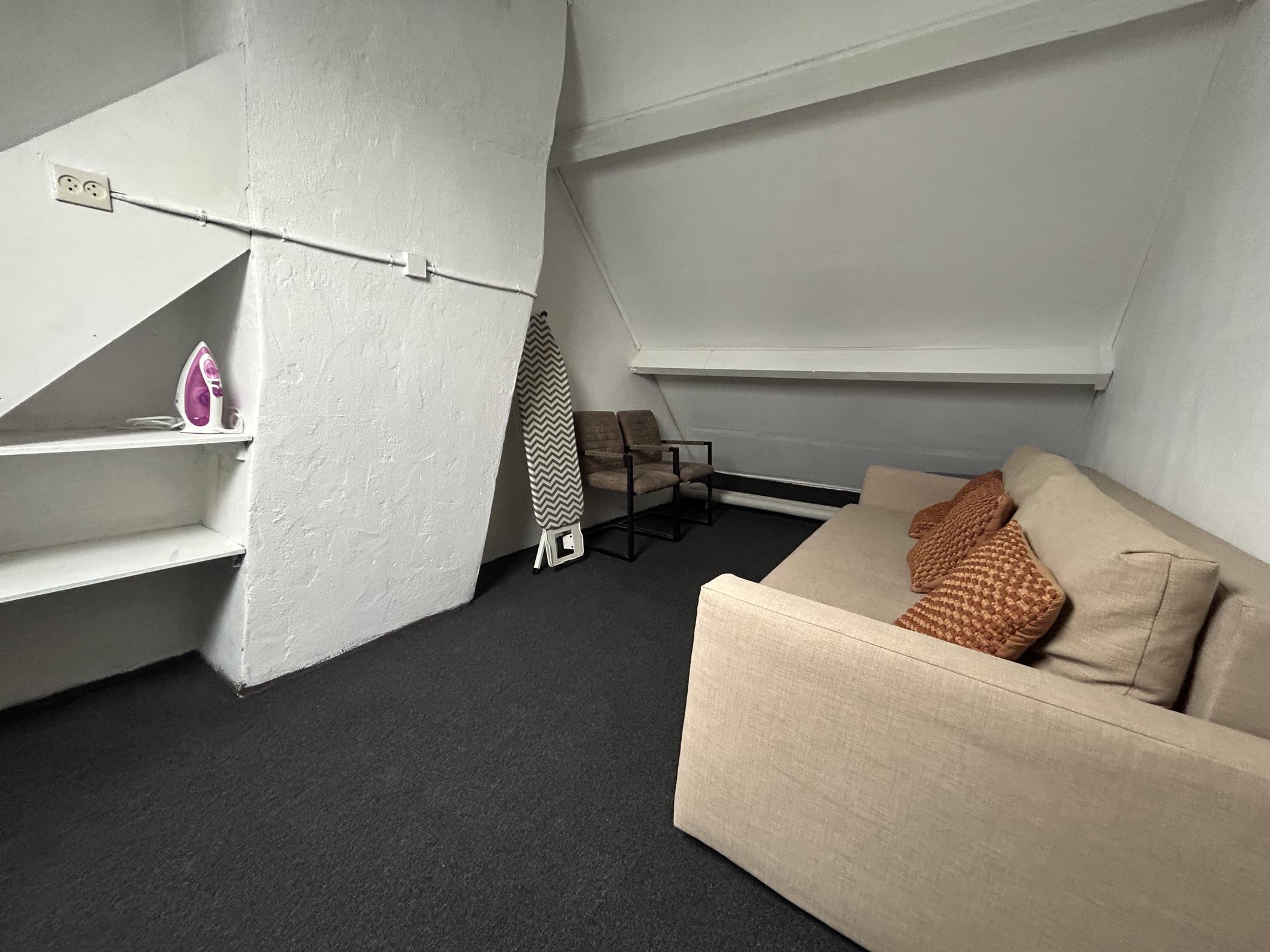 Surprisingly spacious upstairs flat in the Maastricht city with 2 bedrooms, attic for various puposes and a sunny roof terrace.Available for one household.Layout:Ground floor:Entrance with doorbell eq...
