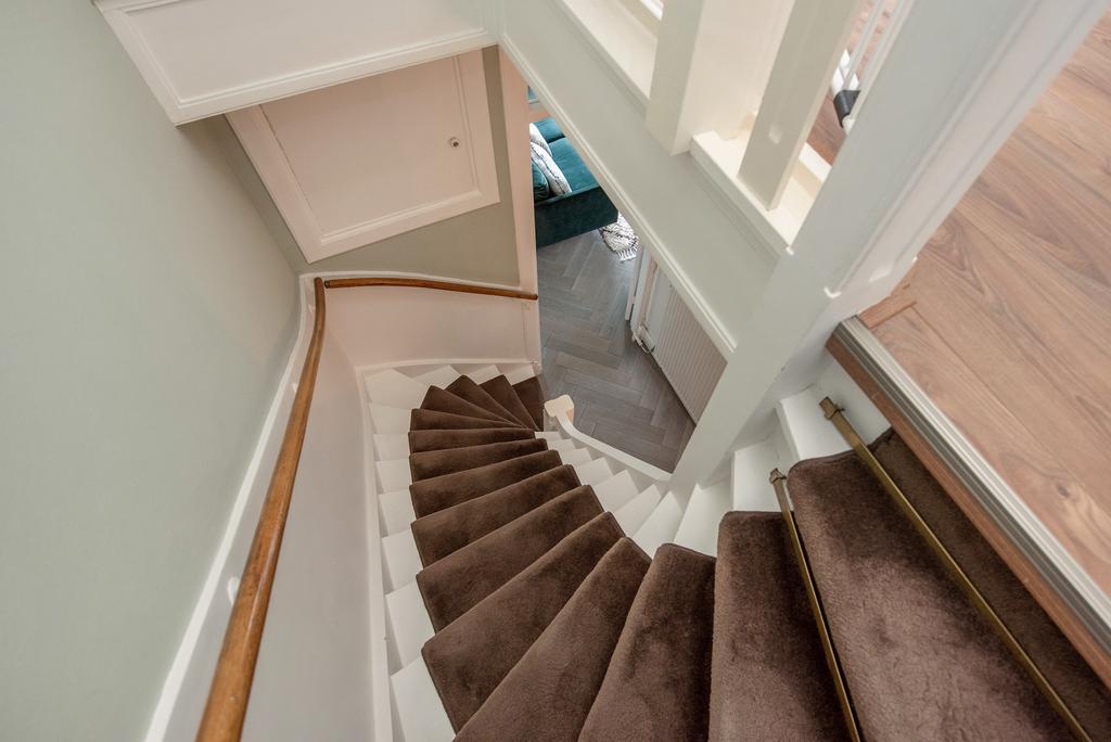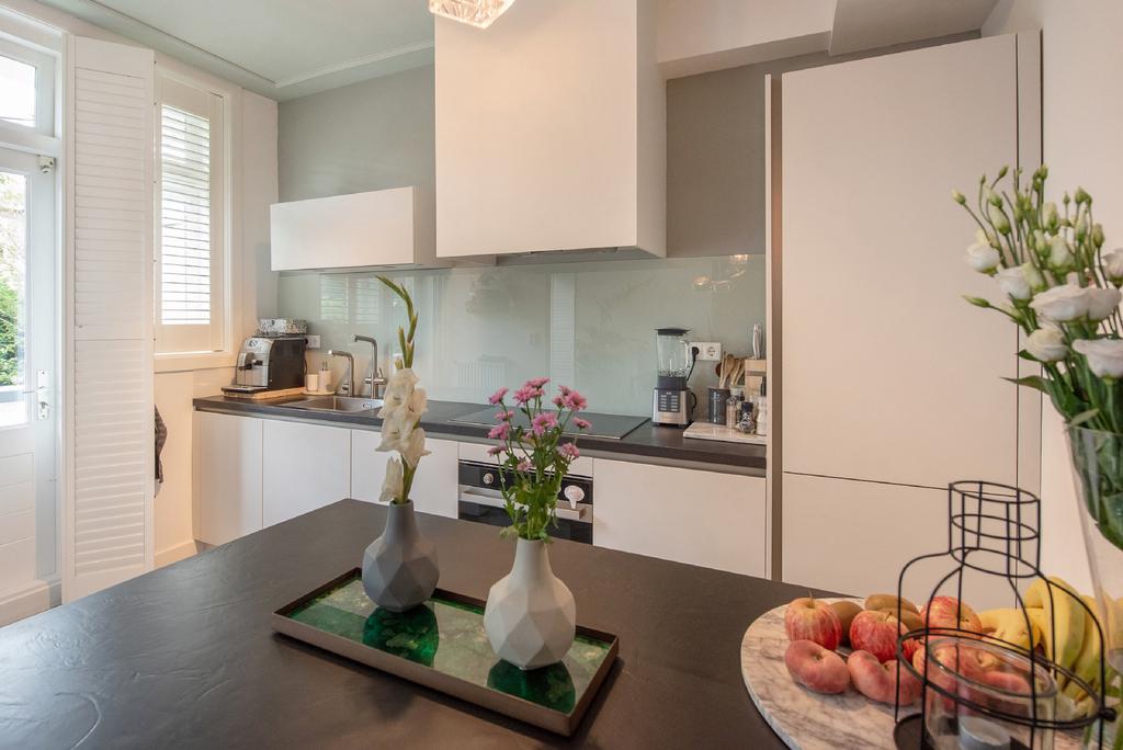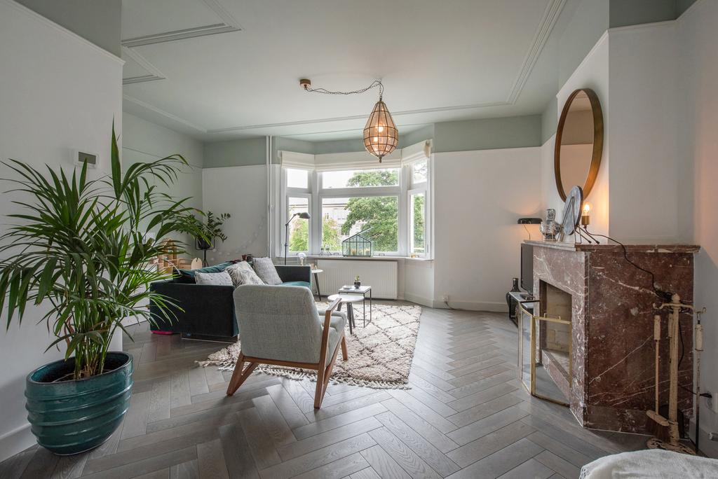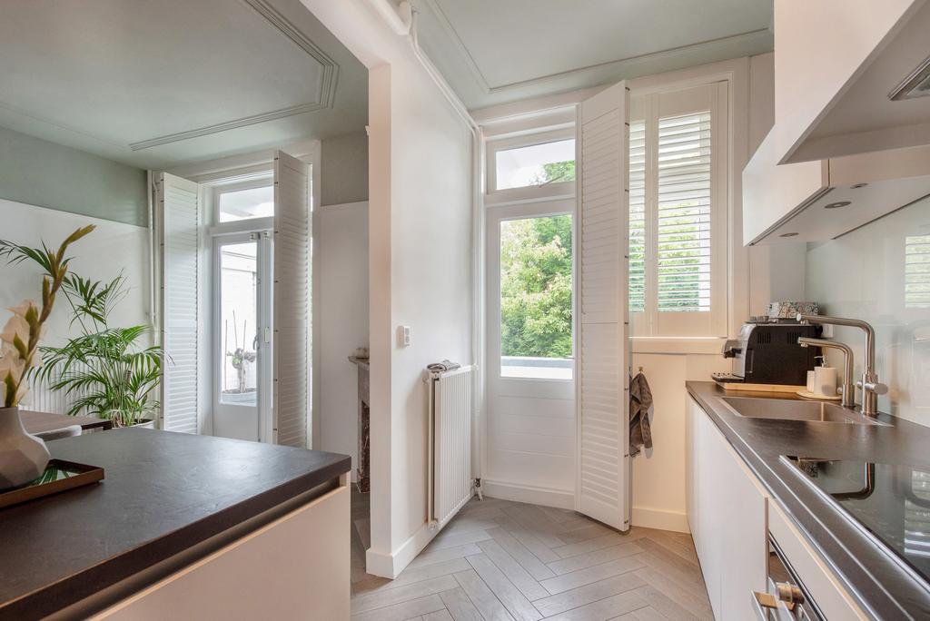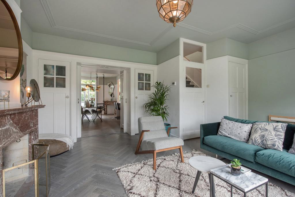 Beschrijving Licht, sfeervol en ruim jaren '30 dubbel bovenhuis aan mooie groene kade in het statige Benoordenhout met zonnig en ruim dakterras van ca 25 m2 en op elke verdieping een zonnig balkon ...