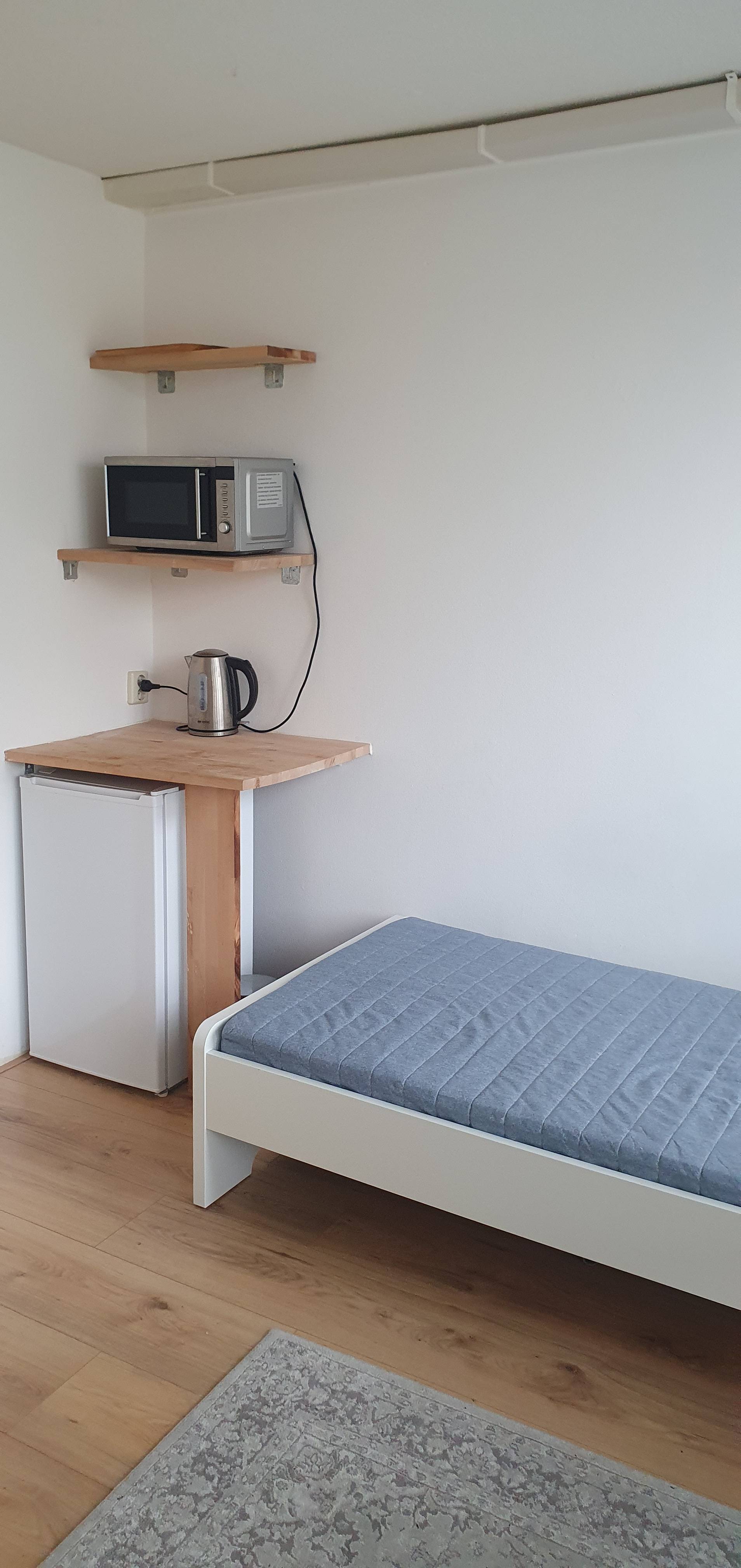 Studio kamer te huur in verband met verblijf buitenland. De studio kamer heeft een eigen wc, een eigen badkamer. Alleen voor jou. De kamer heeft een eigen koelkast, magnetron en WIFI. Alle kosten zijn...
