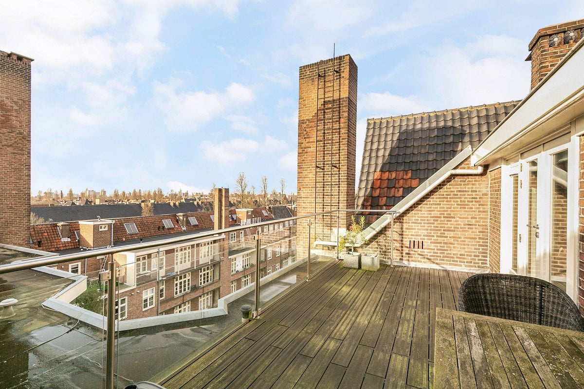 Beschrijving Een fantastisch en zeer licht 2 slaapkamer hoekappartement van ca. 125 m2, gelegen op de bovenste 2 verdiepingen van een statig appartementencomplex. Met lift en een heerlijk zonnig da...