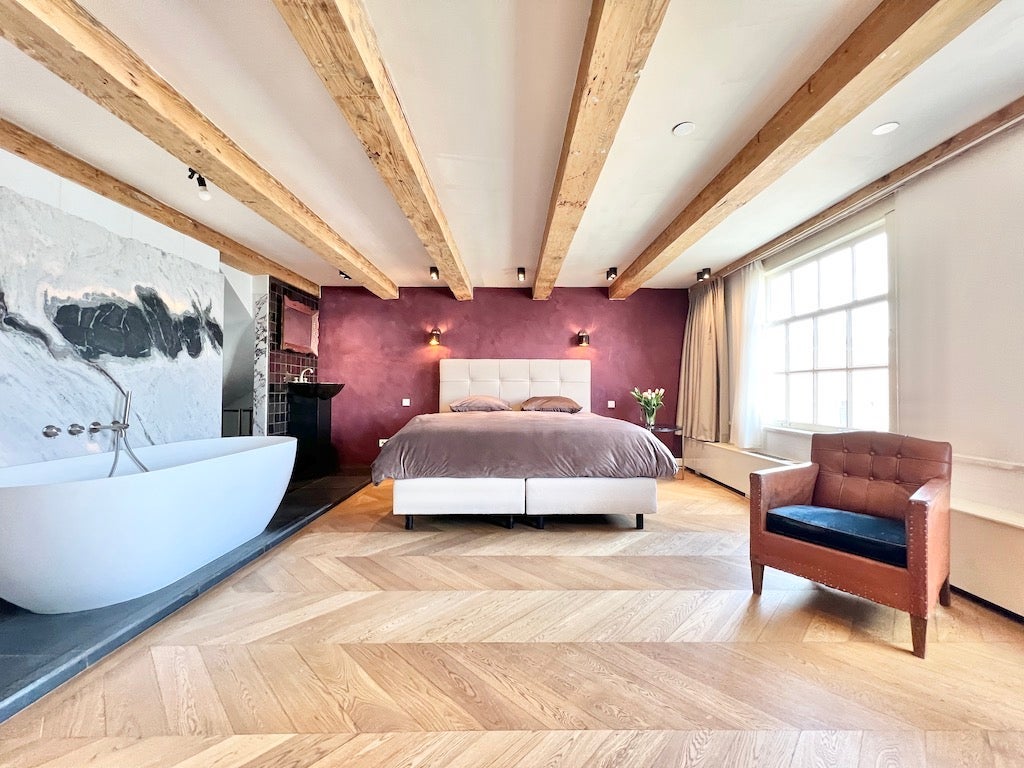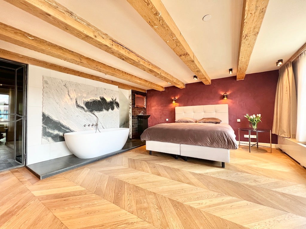 Beschrijving Ontdek dit prachtige appartement met één slaapkamer van 87 m² met direct uitzicht op de Prinsengracht. Dit appartement beschikt over een slaapkamer, een badkamer, een apart toilet en e...