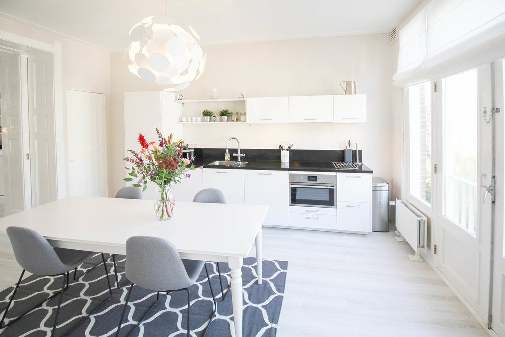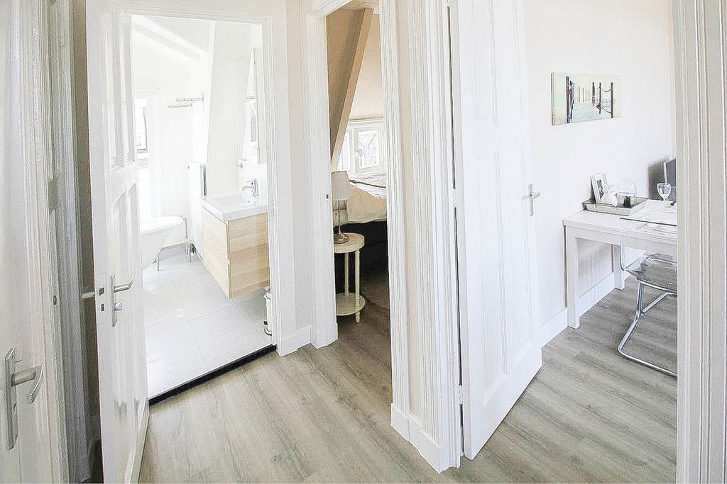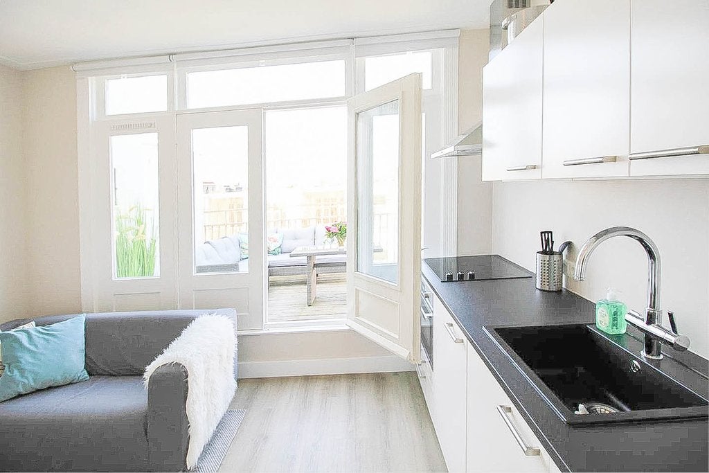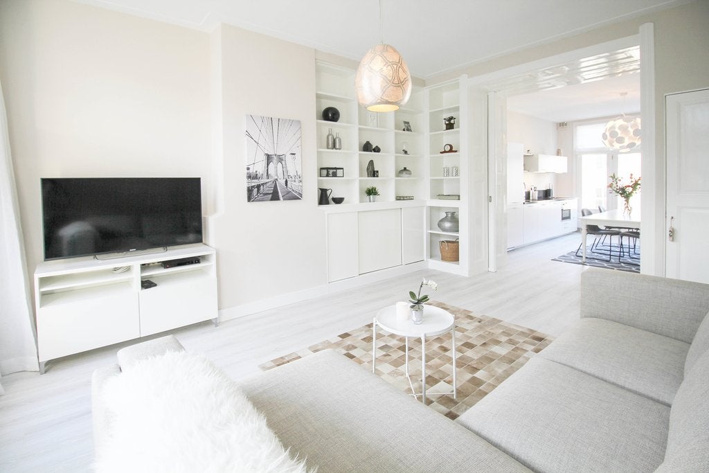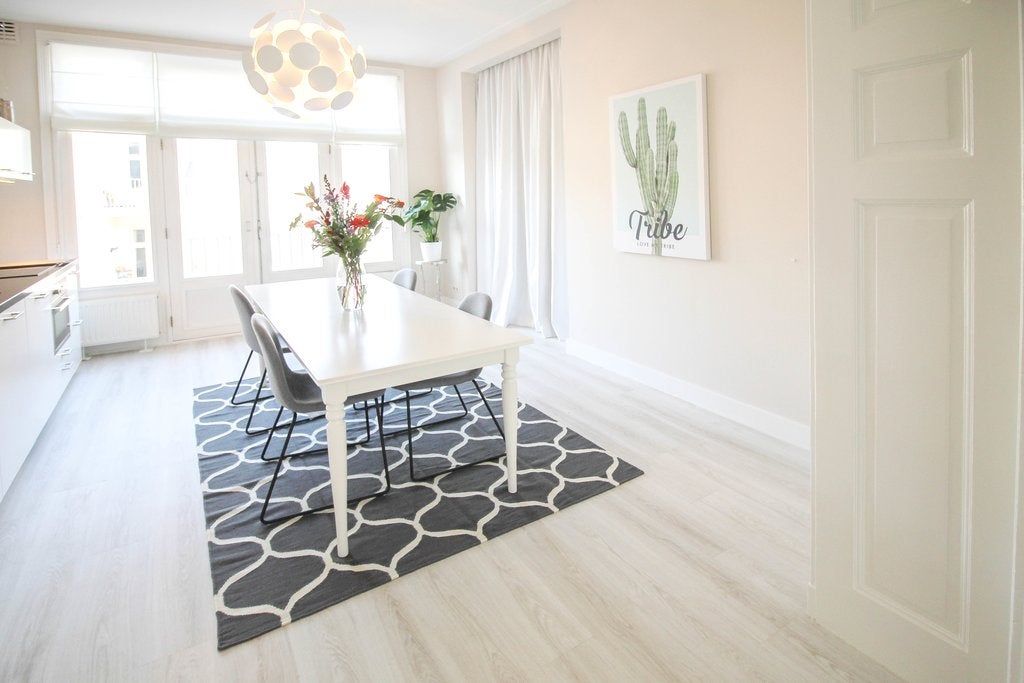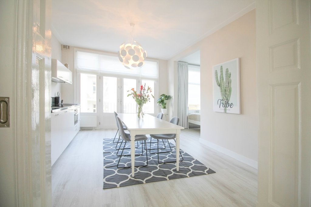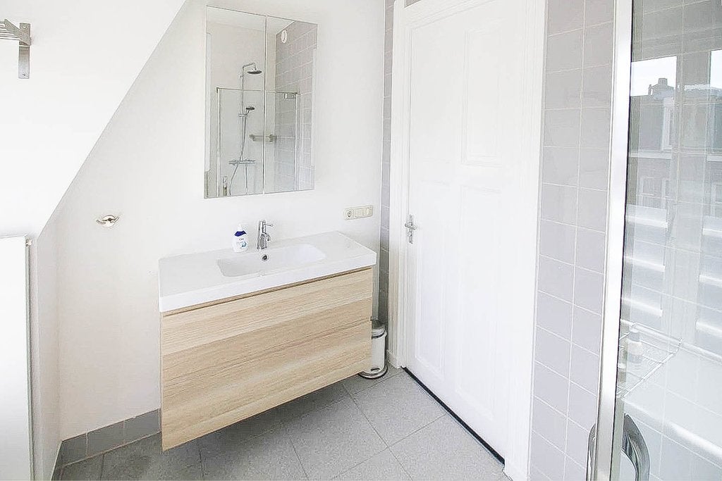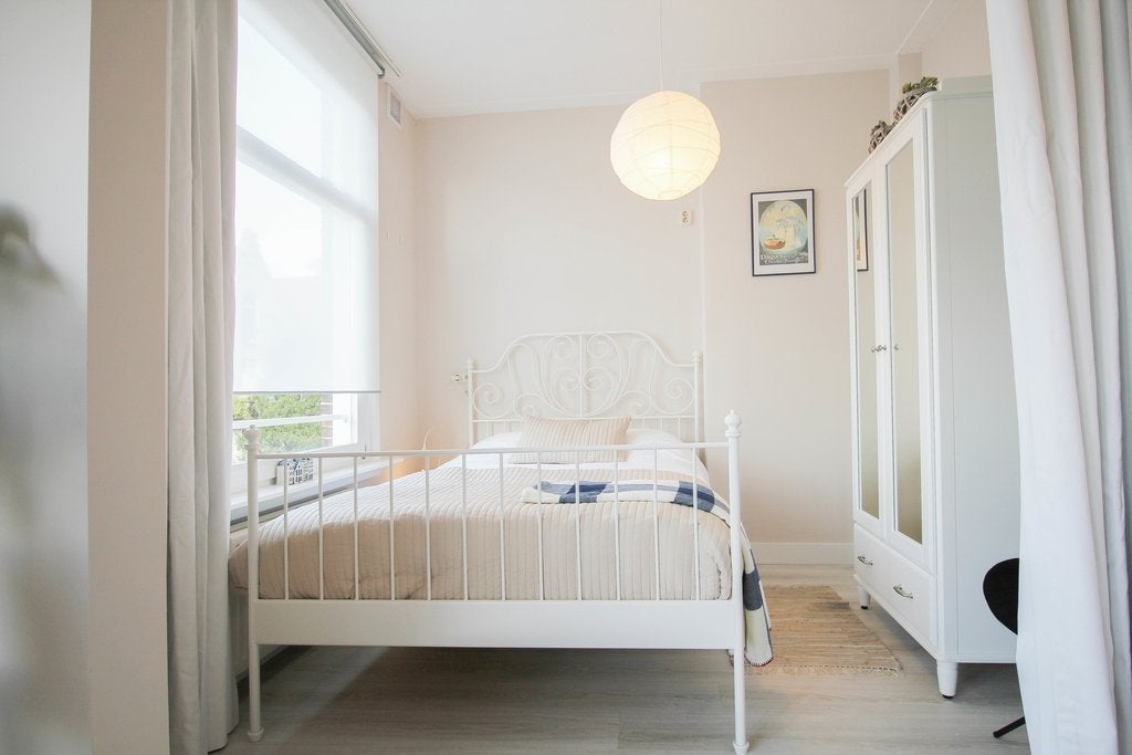 Beschrijving Prachtig, lichtdrie-slaapkamer duplex appartement in het Oude Zuid van Amsterdam met een dakterras Licht en ruim drie-slaapkamer duplex appartement verspreid over de twee bovenste verd...