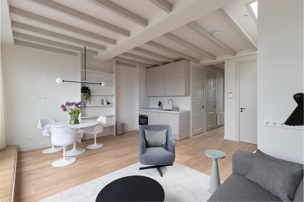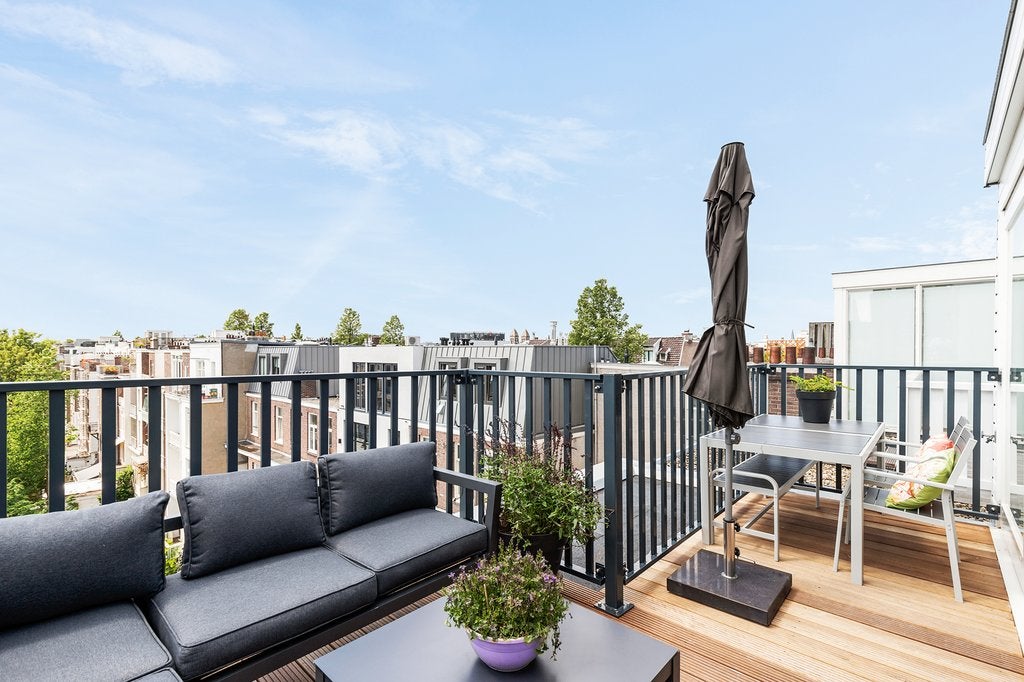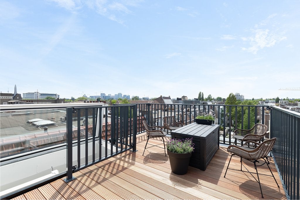 Beschrijving Fantastisch volledig gemeubileerd 2 slaapkamer appartement met lift direct in woning van ca. 65 m2, met 2 dakterrassen! Wauw! Dit appartement is gelegen op de vierde en bovenste etage ...