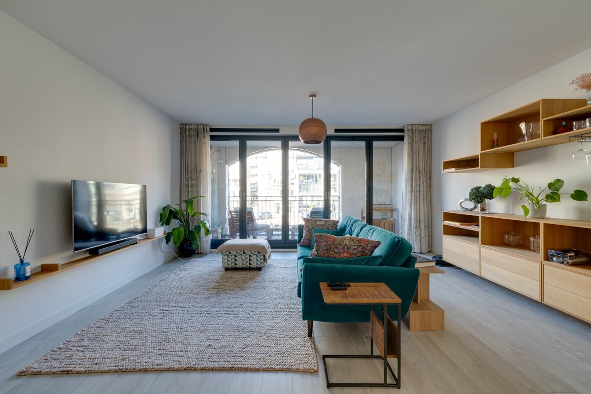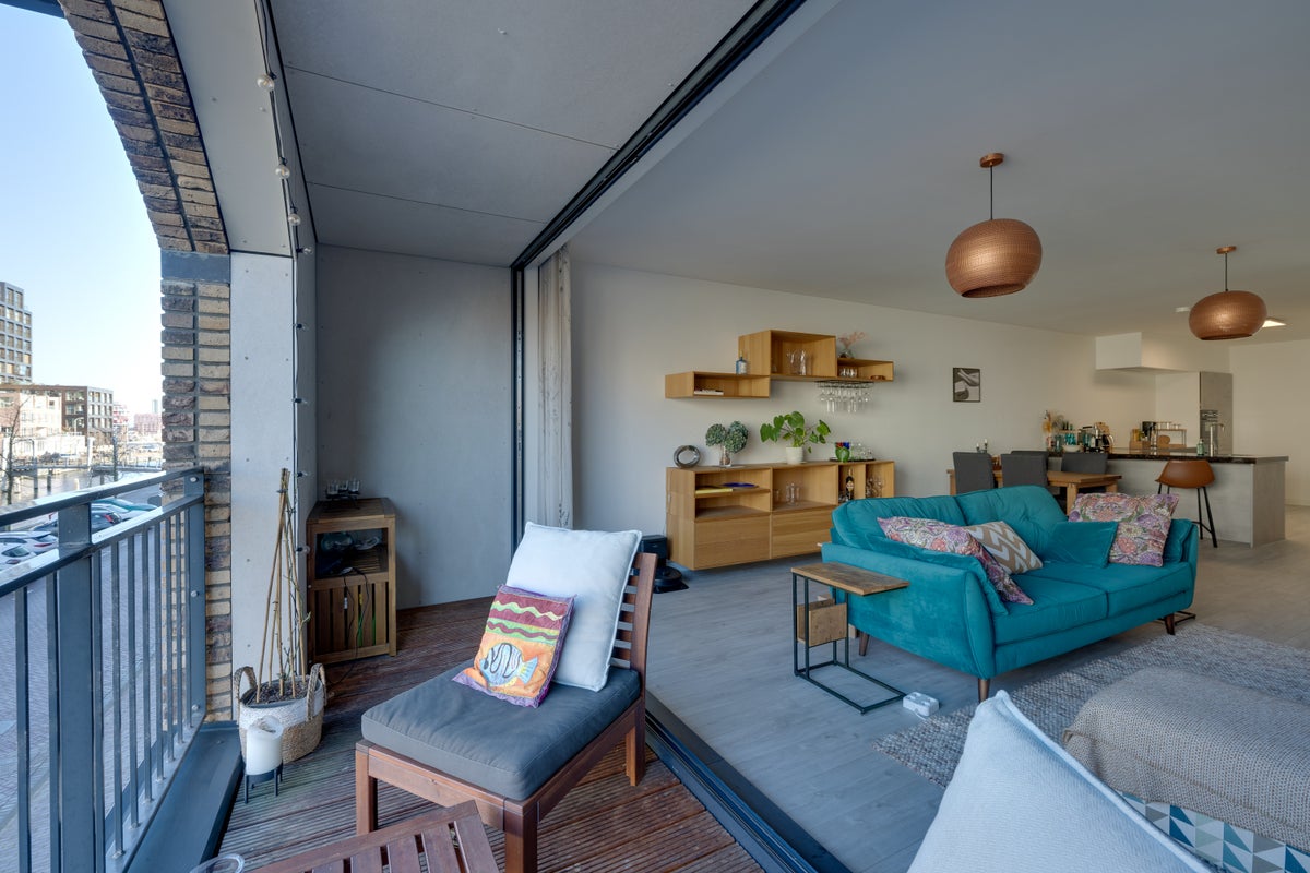 Beschrijving Wiborgeiland 108, Amsterdam Huurprijs €3000,- per maand (excl. G/W/E. internet en TV) Modern en volledig afgewerkt 3-kamerappartement (ca. 96 m²) met terras, gelegen in het recent gere...