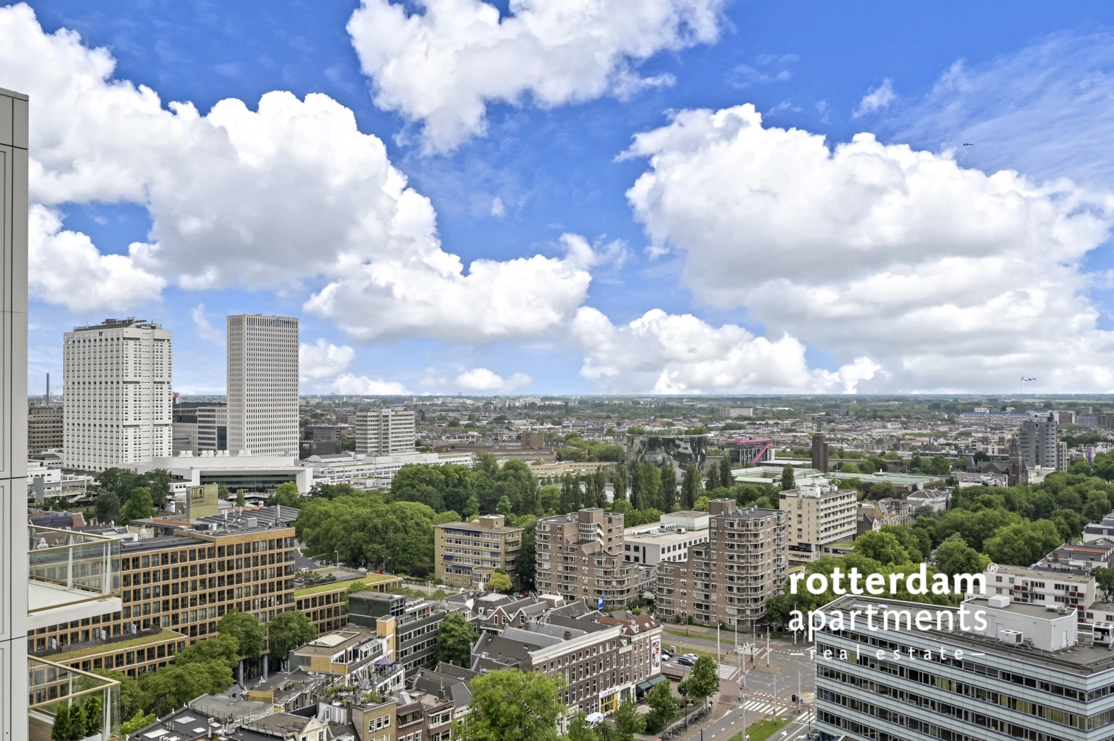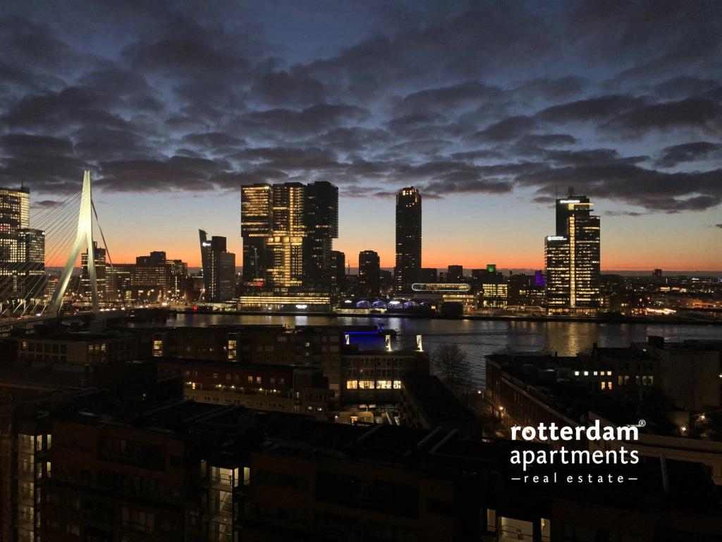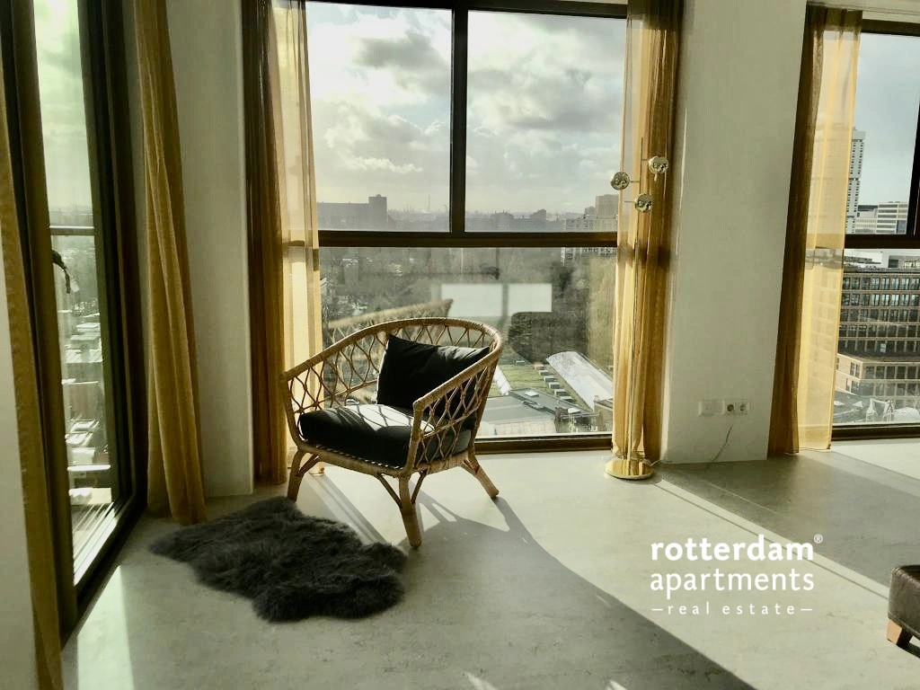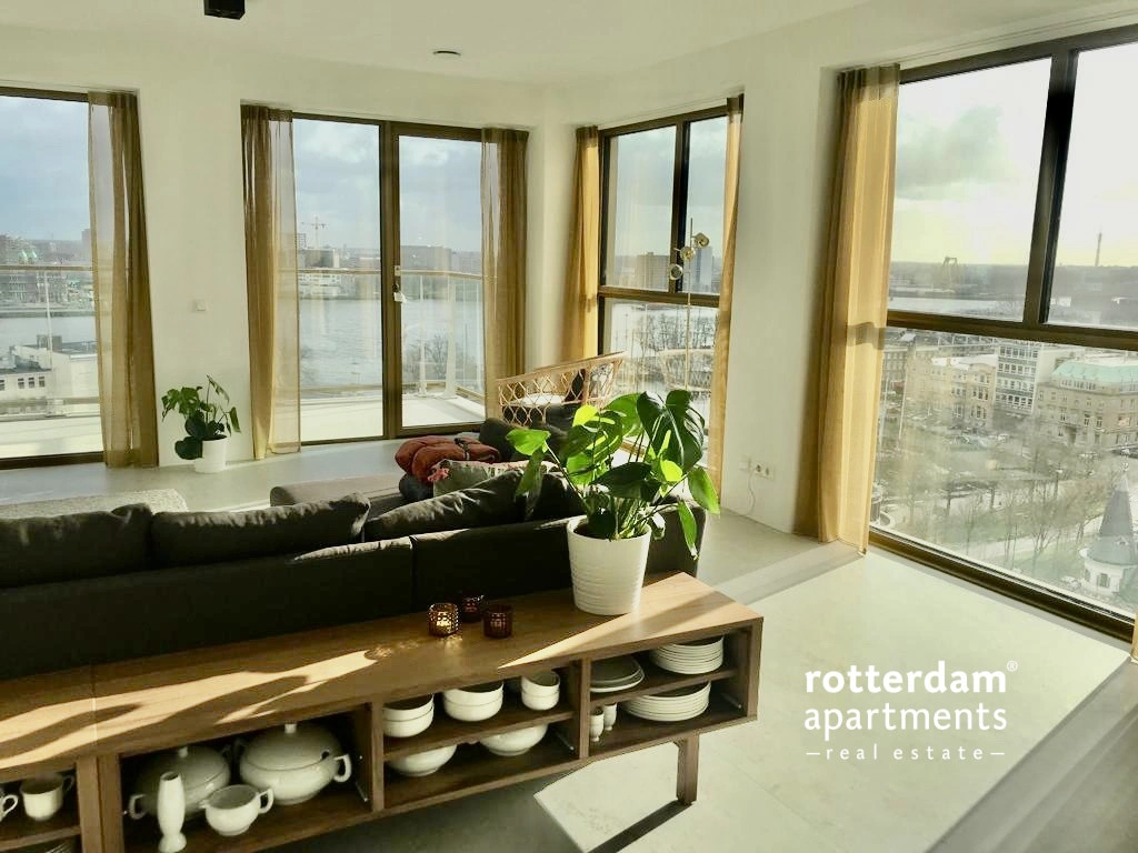 Luxurious 3 bedroom CORNER apartment with skyline view over the Maas and the park. This prestigious apartment complex on the Maas is located in the popular Scheepvaartkwartier amid green parks, histor...