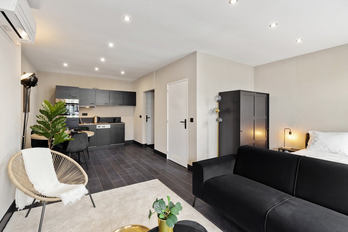 Beschrijving Volledig gerenoveerde short stay studio met uitzicht op Rotterdam Centraal - ideaal voor tijdelijk verblijf van 3 tot 6 maanden Tegenover het Centraal Station van Rotterdam, op de derd...