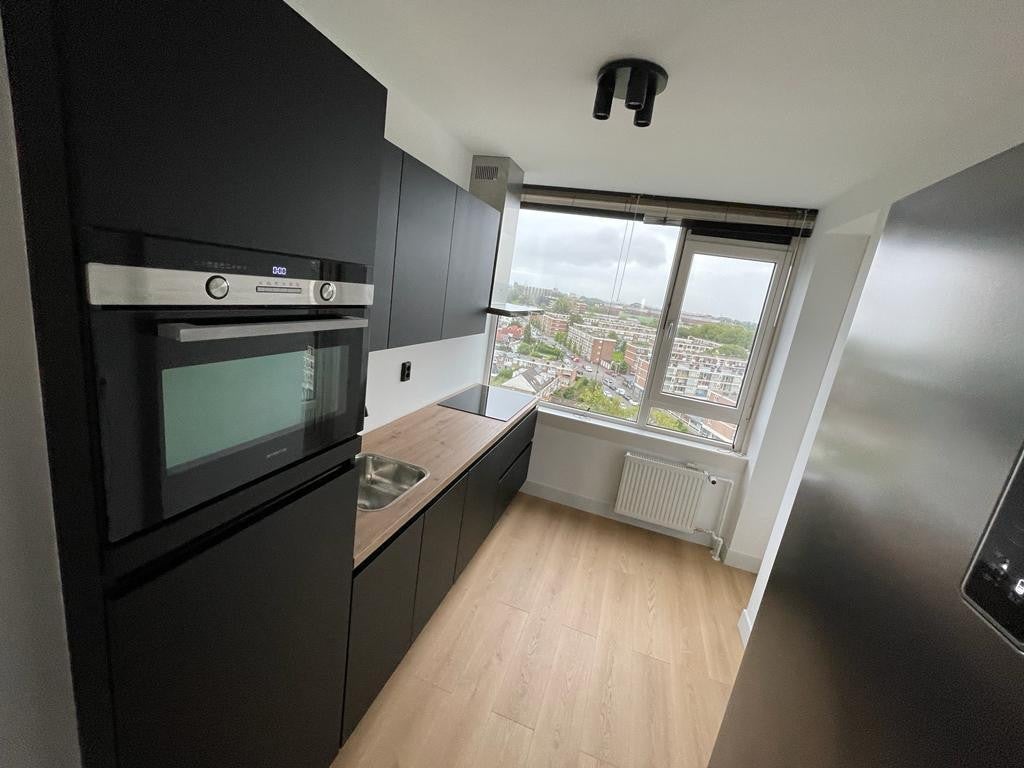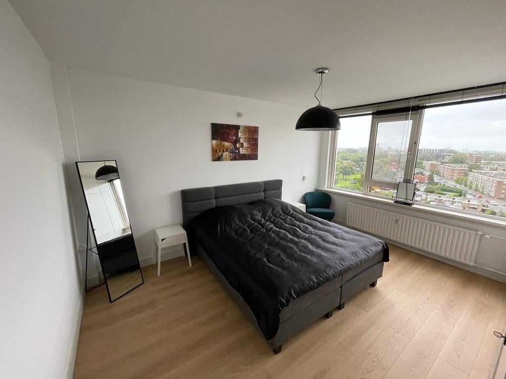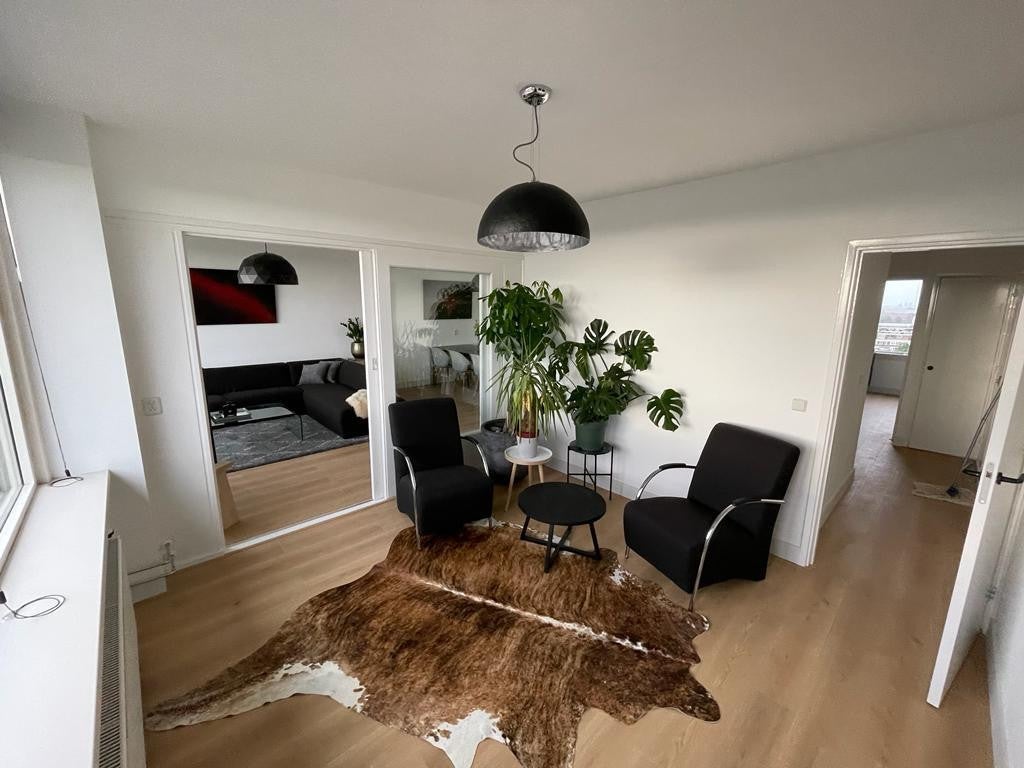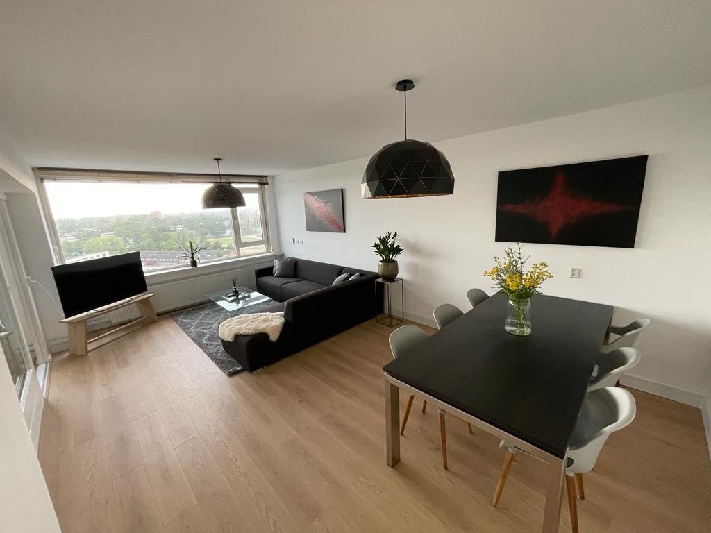 Beschrijving Gerenoveerd, moderne 4-kamerappartement (100m2) met 2 balkons op de 10e verdieping met vrij uitzicht. Alles is vernieuwd: keuken (zwart), badkamer (zwart/grijs), vloer (hout), en ...