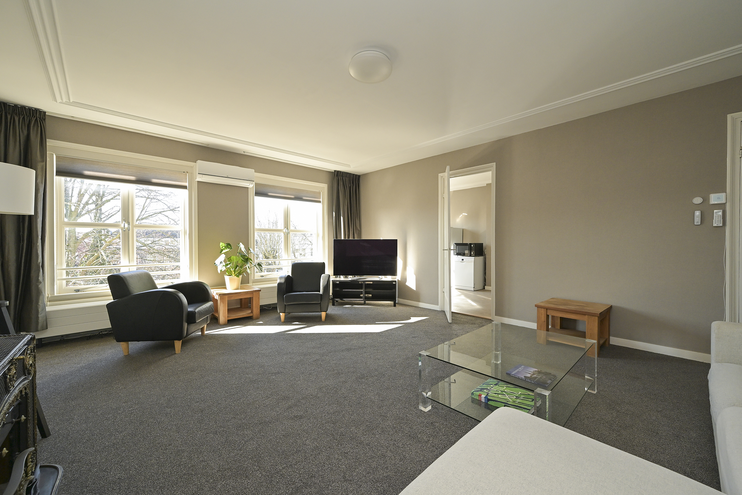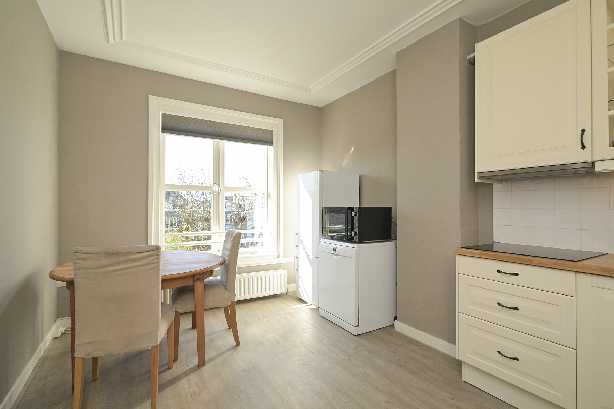 Omschrijving Located on the prestigious Koninginnegracht, this charming apartment is situated on the top floor of a monumental canal house. The property features a spacious bedroom with a walk-in ...
