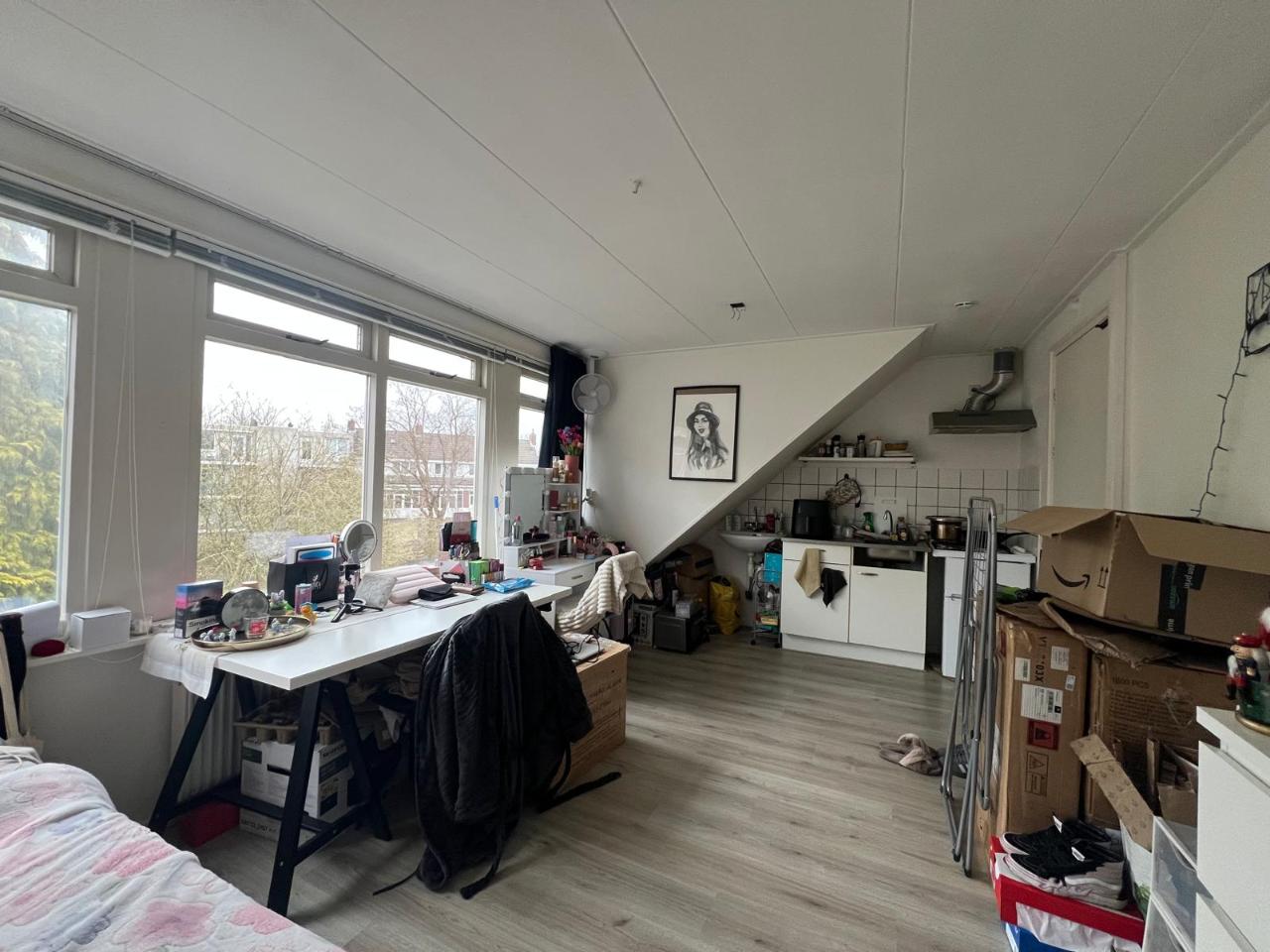 Per 1 april beschikbaar kamer aan de Wassenberghstraat nabij het Noorderplantsoen. Douche, toilet en tuin worden gedeeld met huisgenoten