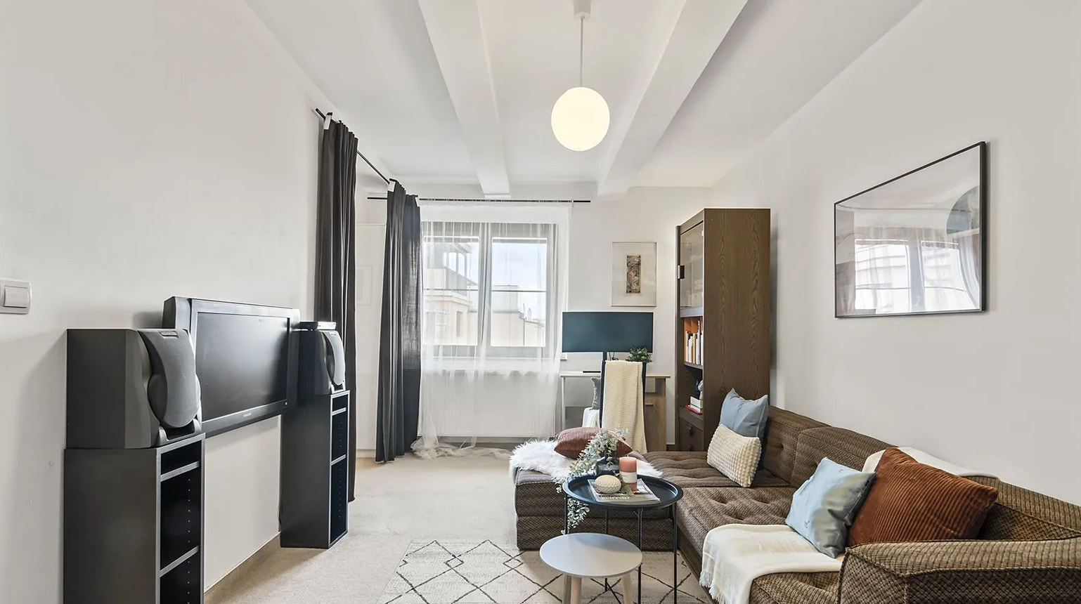 We offer for rent a bright 1+k apartment (33 m²) located on the 5th floor of a building with an elevator. The apartment is fully furnished with furniture and appliances. The apartment also has a stora...
