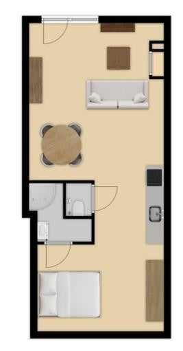 Buitenkans om te wonen midden in de Bourgondische binnenstad van 's-Hertogenbosch op loopafstand van het NS-station en om de hoek van de Bossche markt. Studio woning gelegen op de begane grond aan het...