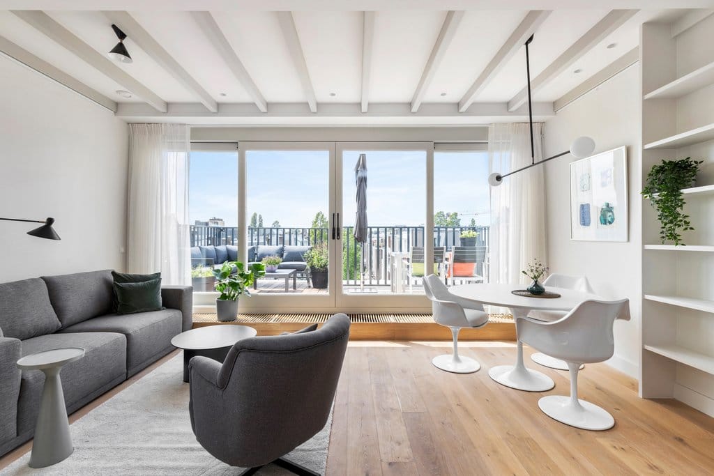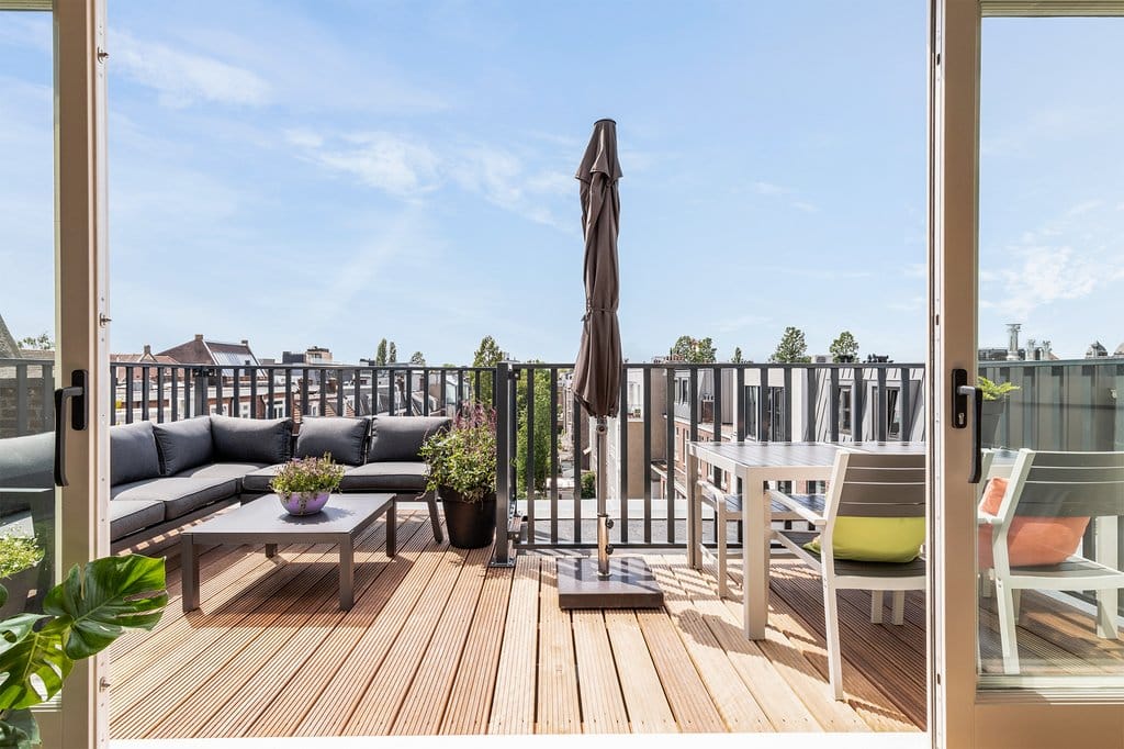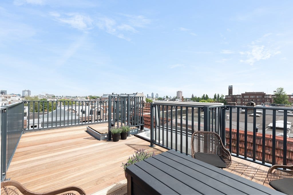 Fantastisch volledig gemeubileerd 2 slaapkamer appartement met lift direct in woning van ca. 65 m2, met 2 dakterrassen! Wauw! Dit appartement is gelegen op de vierde en bovenste etage van dit complee...