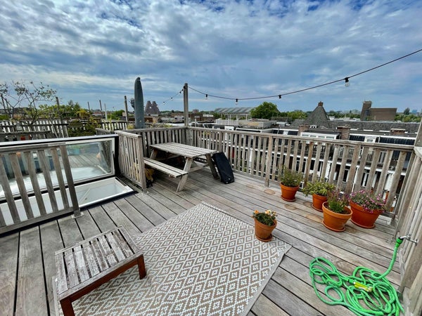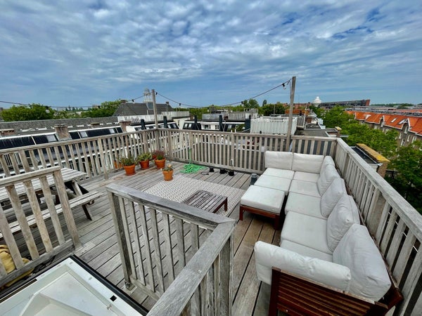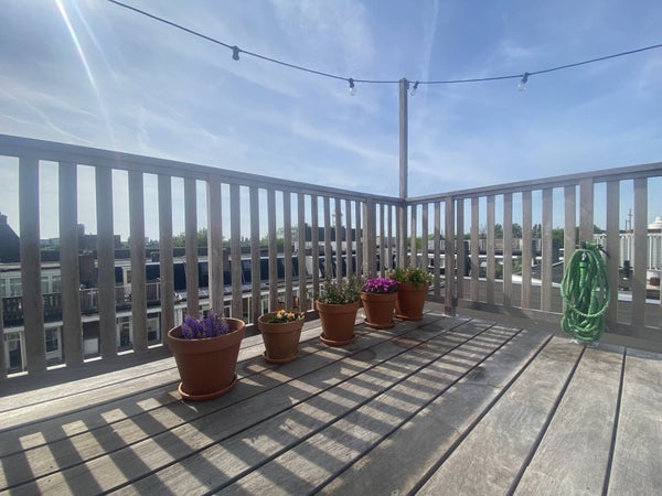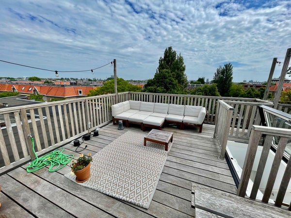 Located in the trendy Westerpark area, we offer this great 2-bedroom apartment of 87m2, with lots of light and amazing roof terrace. The apartment is divided over 2 floors with 2 balconies - both faci...