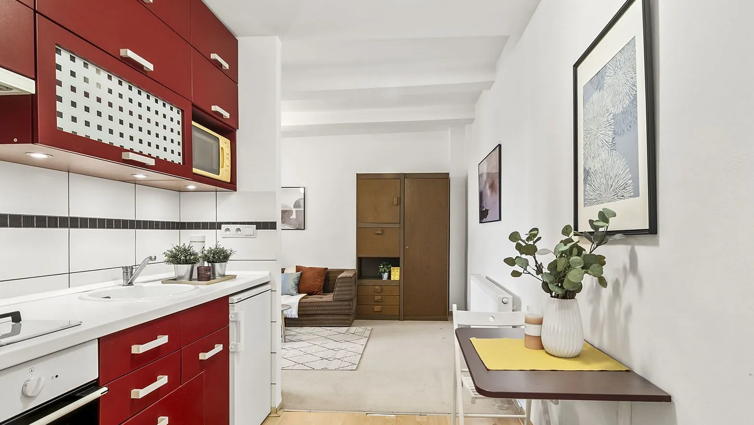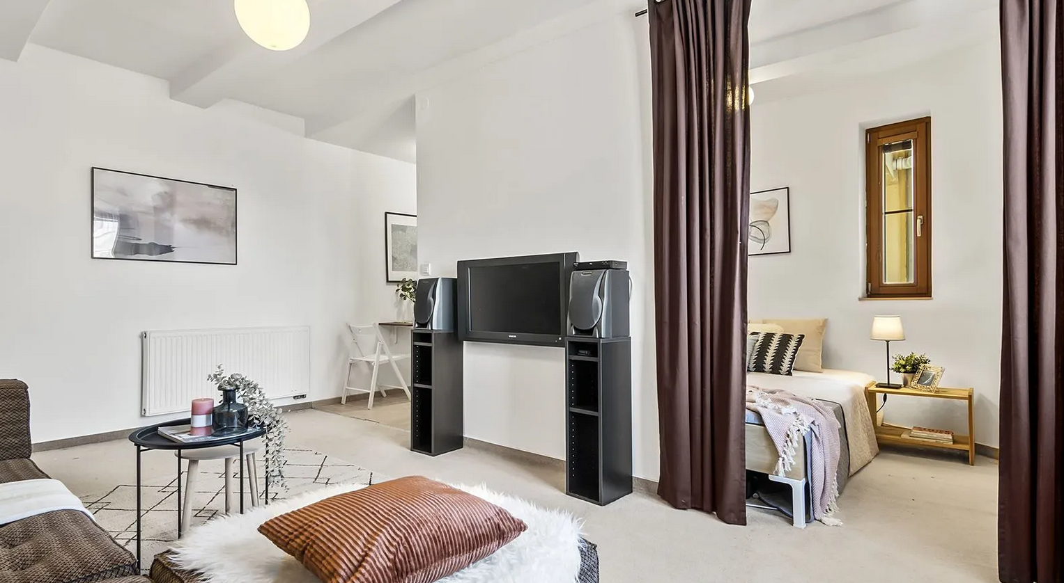 We offer for rent a bright 1+k apartment (33 m²) located on the 5th floor of a building with an elevator. The apartment is fully furnished with furniture and appliances. The apartment also has a stora...