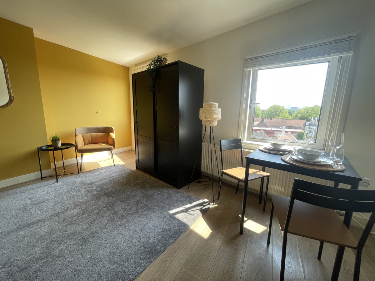 Beschrijving In Rotterdam Oost, wijk genaamd Kralingen gelegen gemeubileerde studio op de vierde verdieping met klein balkon aan de voorzijde. De studio is gunstig gelegen op loopafstand van metros...
