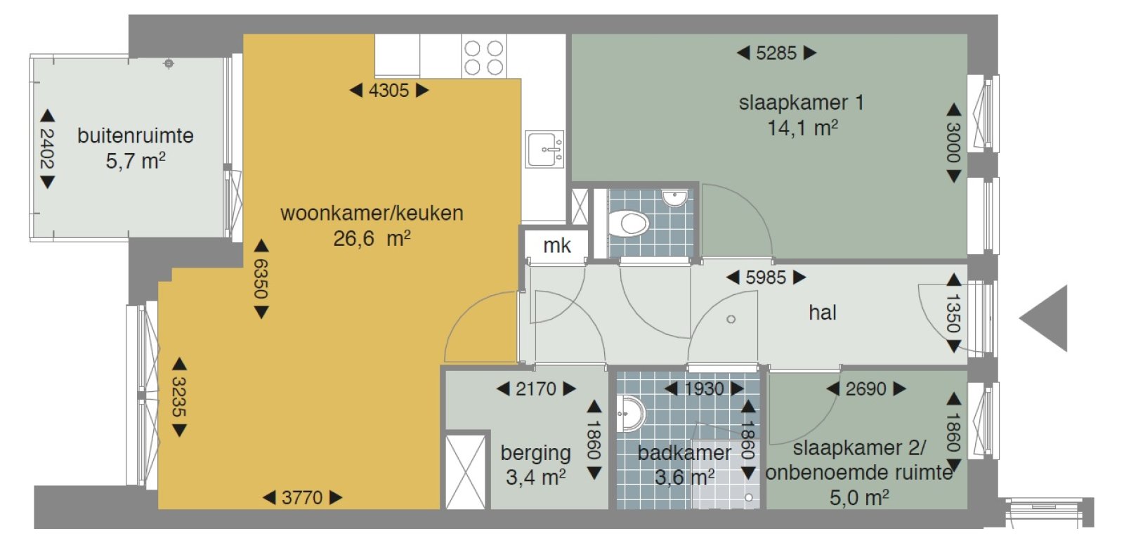 Luxe en ruim appartement met eigen parkeerplaats in project Veemarkt! Indeling U komt het appartement binnen in de hal. Hier heeft u toegang tot het toilet, meterkast, berging en beide slaapkamers. Vi...