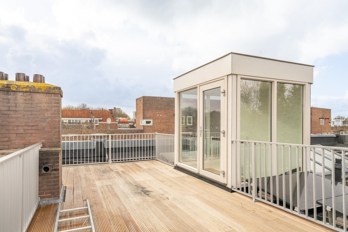 Beschrijving Fijn en goed ingedeeld 3-kamerappartement met een waanzinnig dakterras, gelegen op een aantrekkelijke locatie. INDELING De lichte woonkamer beschikt over een half open keuken, voorzien...