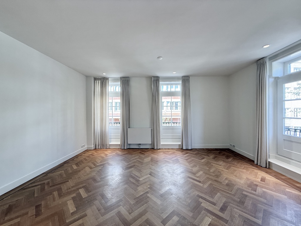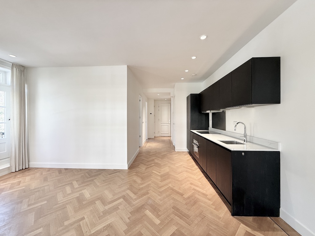 Wooden floor Ceiling lights Central heating Curtains Kitchen equipped with drawers and cabinets Integrated 4-ring induction stove Integrated extractor fan Integrated dishwasher Integrated fridge and f...