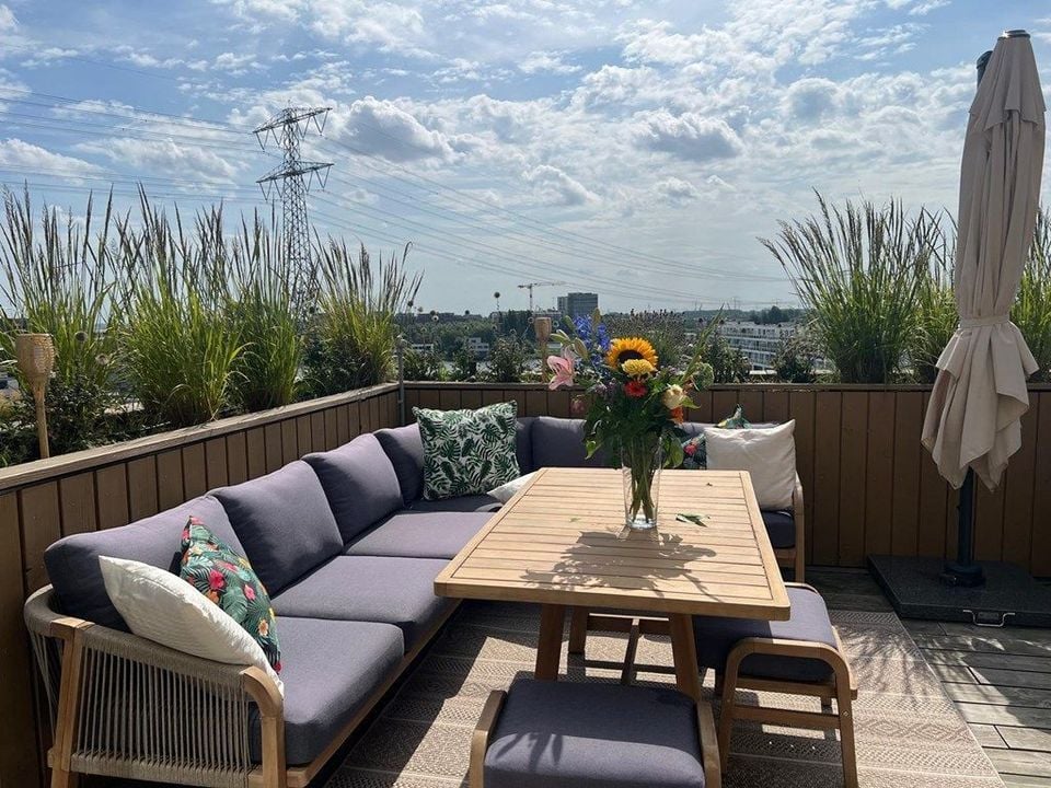 The apartment is located within the iconic Sluishuis building, a landmark piece of modern architecture situated at the entrance of IJburg (Steigereiland) in Amsterdam. Designed by the renowned Bjarke ...