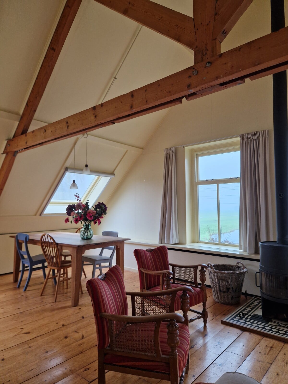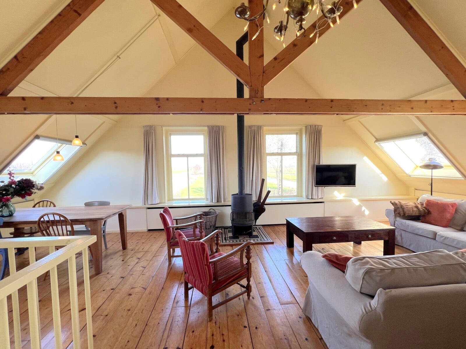 Appartement, nieuw en licht, gemeubileerd en gestoffeerd, vloeropp. ca.100 m2. Gehele eerste verdieping van een woonboerderij in het buitengebied van Bergambacht, nabij Rotterdam en Gouda. Prachtig vr...
