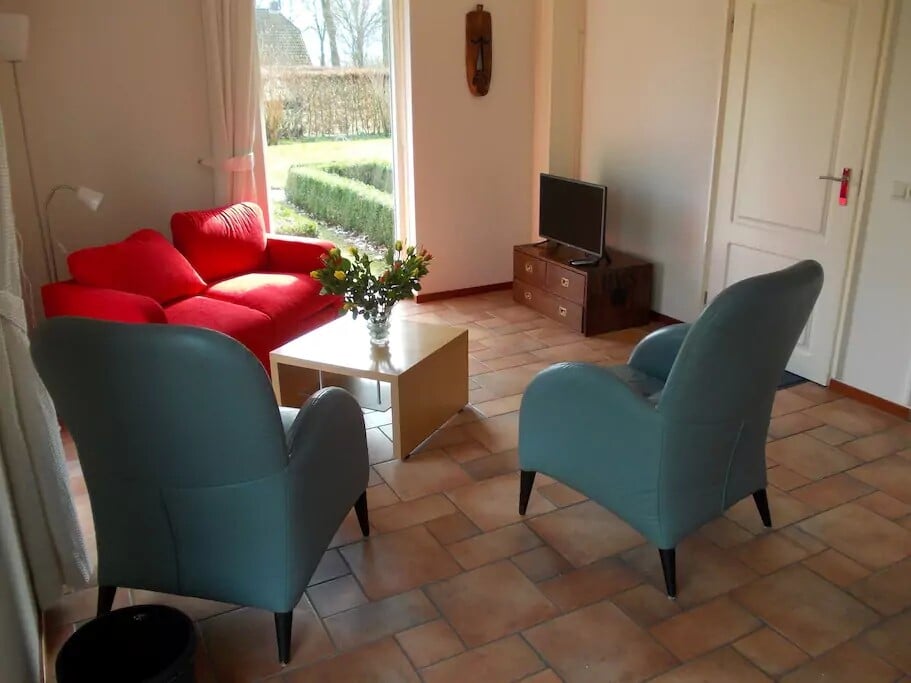 Mooi appartement in woonboerderij, aan tuin gelegen, met parkeerruimte en extra ruimte voor spullen in een rietgedekte schuur. Voorzien van alle gemakken, deels gemeubileerd (wat er niet is, in overle...