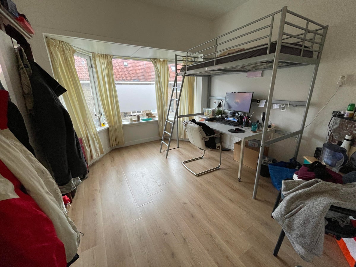 De kamer is ca. 16 m2 en heeft een eigen wasbak. Daarnaast is er nog een gemeenschappelijke keuken aanwezig, badkamer met wasmachine & droger, een 2e toilet, een fietsenberging en een ruim balkon....