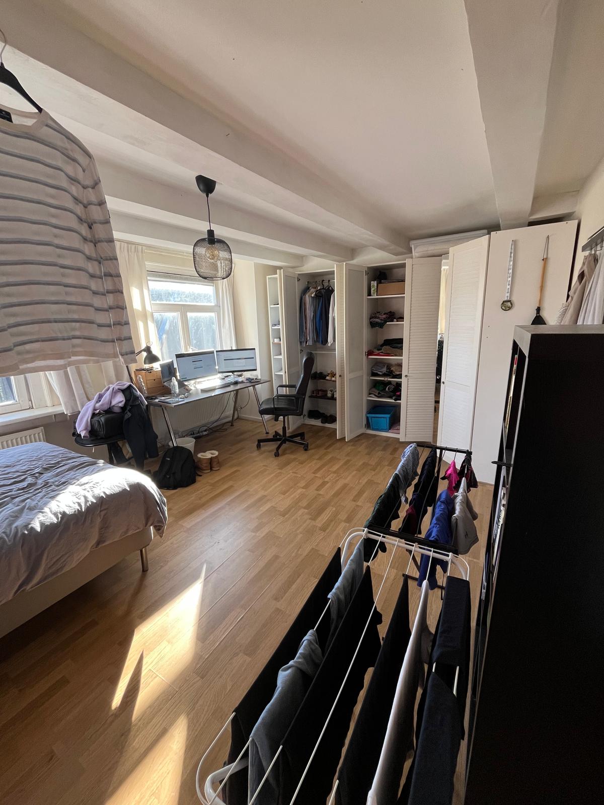 - Ruime en nette kamer! 22m2- Utrechtsestraat, Amsterdam- April + Mei beschikbaar!- Grote ingebouwde kast en gordijnen aanwezig!- Bed + bureau NIET aanwezig!- Huis van 160m2 + nog een dakterras! - 3 m...