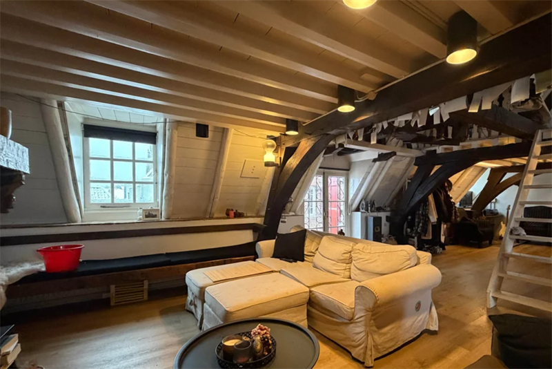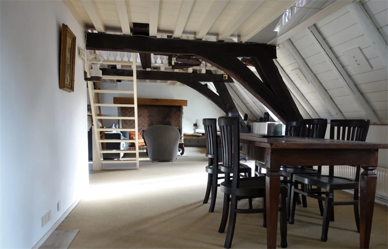 3e verdieping: Entree, hal, toilet, toegang tot ruime en gezellige woonkamer met open haard en nostalgische details. De open woonkeuken is voorzien van inbouwapparatuur zoals een vaatwasser, koelkast,...