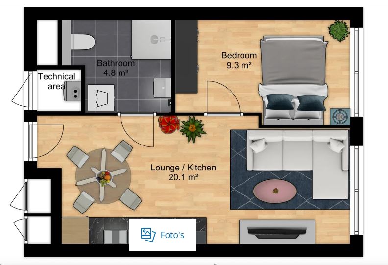 Welkom bij The Cohesion Wembley in Amsterdam! De Type A6 is een eenkamerappartement dat zich bevindt in het gebouw van The Cohesion Wembley. Dit appartement heeft een aparte slaapkamer, badkamer en ee...
