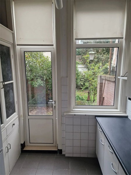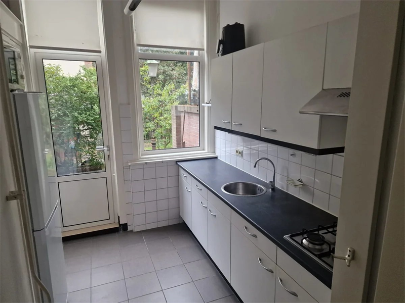 Mooi ruim 2 kamer appartment op de begane grond met voor en achtertuin. Ruime woonkamer Ruime slaapkamer Keuken met toegang naar de tuin,