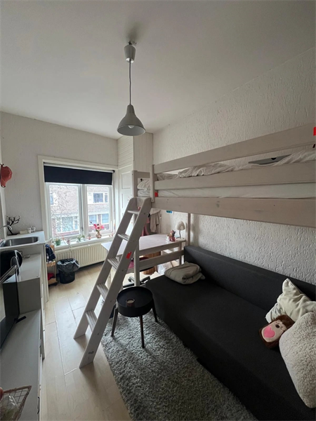 Per 1 april beschikbaar kamer aan de Korreweg. Keuken, douche, toilet en balkon wordt gedeeld met 3 andere huisgenoten