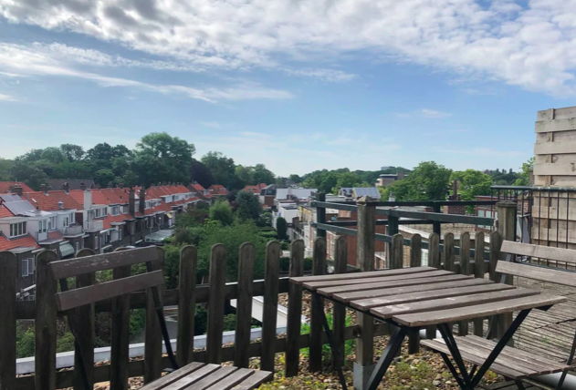 Super leuke kamer aan de achterzijde met gaaf dakterras! Keuken en badkamer delen met 1 persoon. afmeting +/- 3.50 x 4.50 meter. met dakterras 5x5 meter. Incl.gebruik wasmachine door middel van een mu...