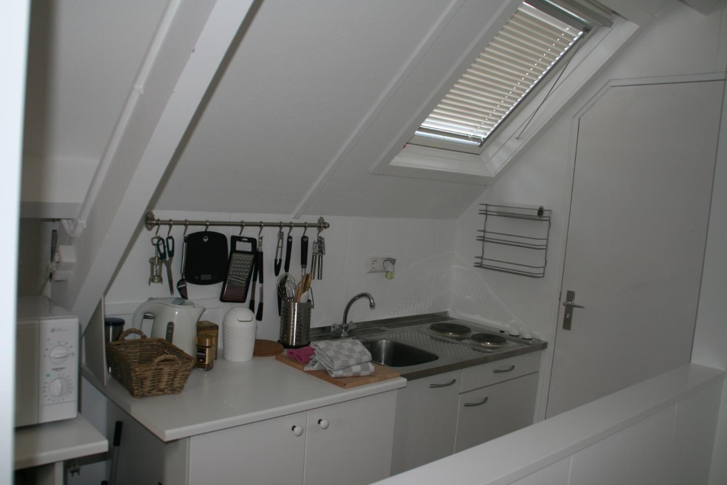 Ruime studio met eigen ingang en toilet, keukenblok, bed , douche. Eerste verdieping. Eigen ingang. Voor 1 persoons huishouden. Geen wasmachine aanwezig. Tevens de beschikking over een 3,5Kw airco uni...