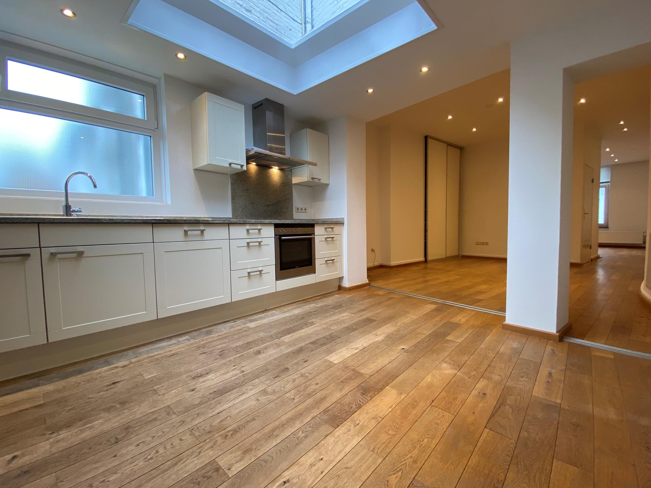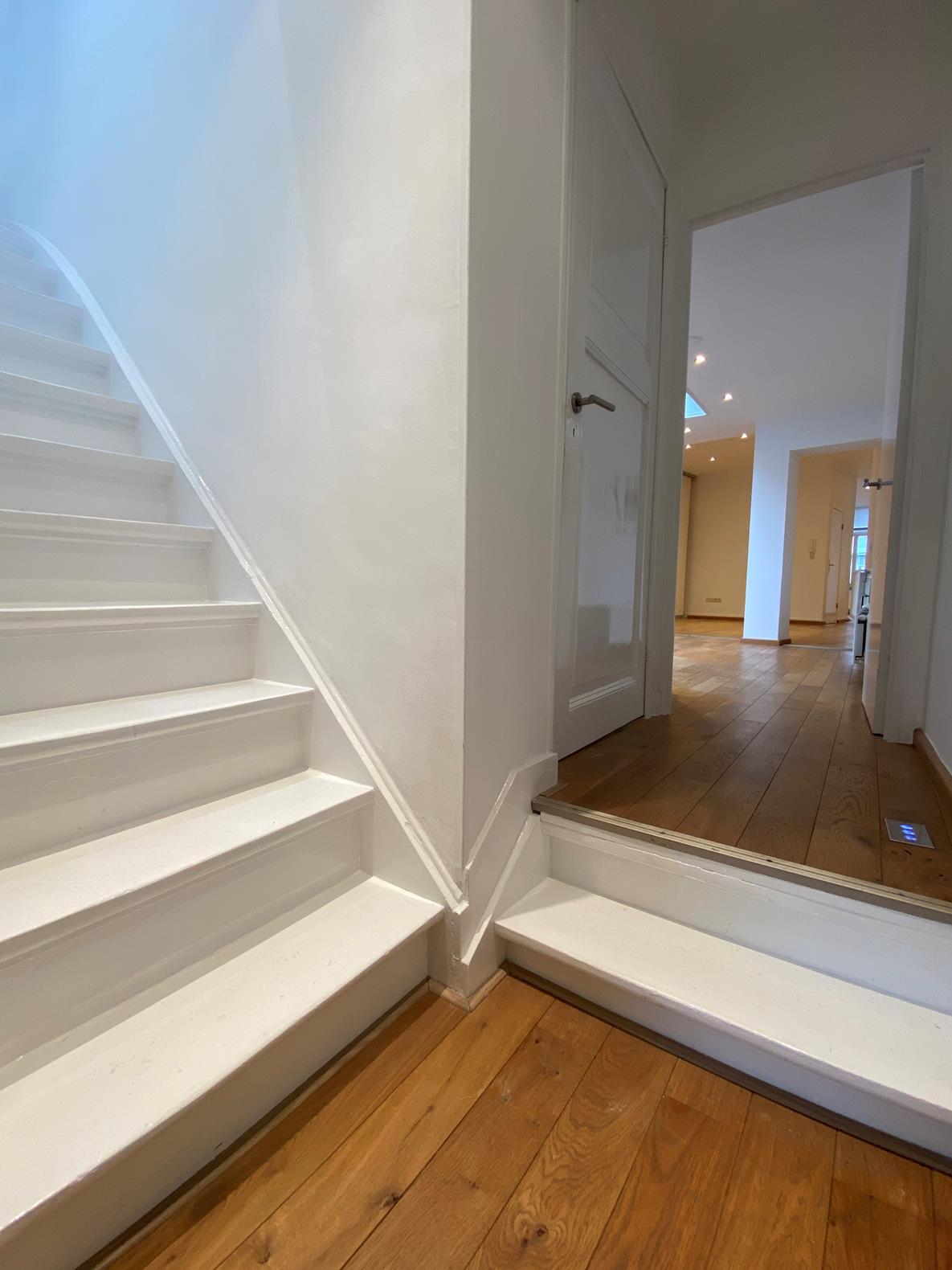 Upholstered upper floor apartment in a characteristic mansion (1872) with 2 bedrooms, modern kitchen, spacious roof terrace, and 2 bathrooms.LayoutGround floor:Authentic entrance with staircase to the...